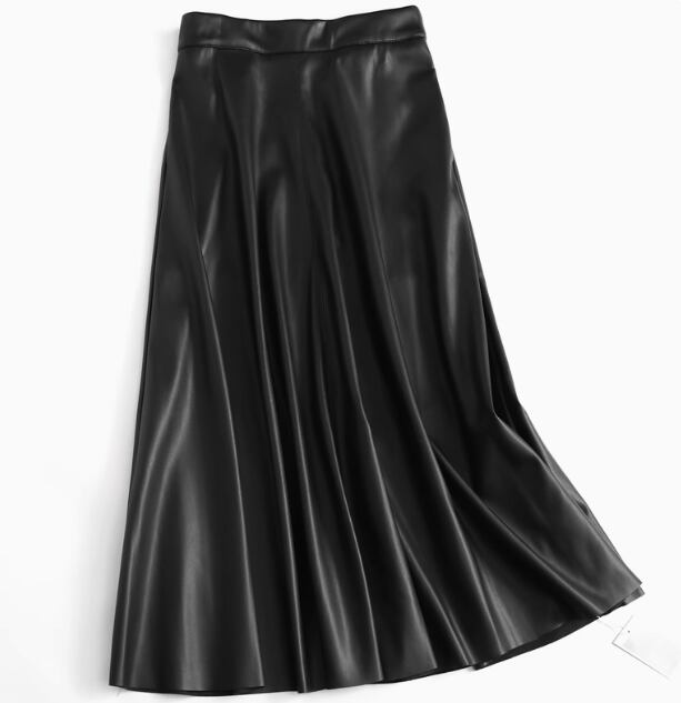 レザースカートですがAラインになっており柔らかい雰囲気に!