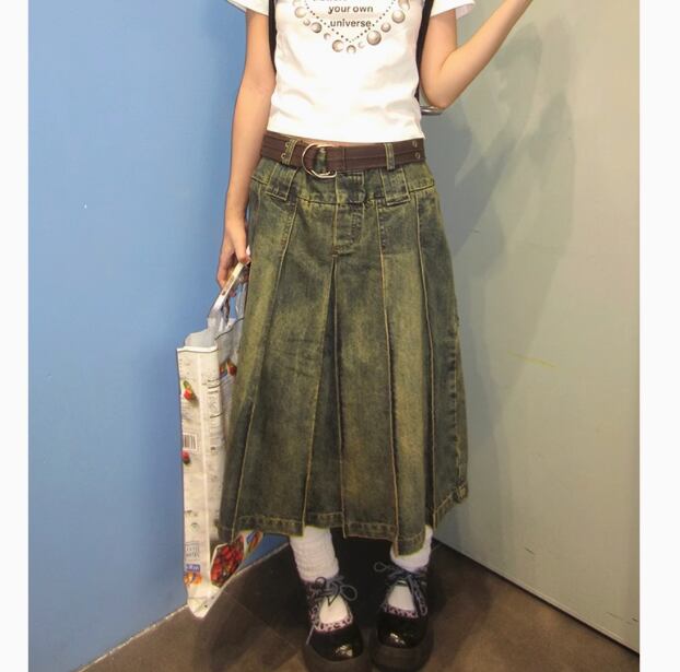 レトロっぽさもあるデニムにプリーツがほどこされておりレディライクなアイテム!