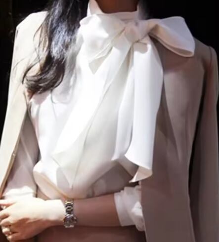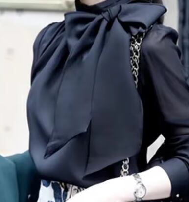 春夏のファッションに最適なシフォンブラウスです。軽やかで柔らかなシフォン素材は、心地よい着心地を提供し、さまざまなシーンで活躍します。白黒の蝶ネクタイ襟デザインは、フェミニンさと上品さを兼ね備え、特別な日のお出かけにもぴったりです。長袖でありながら軽やかに着こなせるため、春先から夏の暑さまで幅広く重宝します。