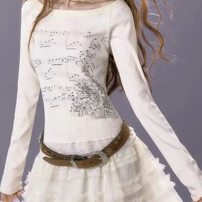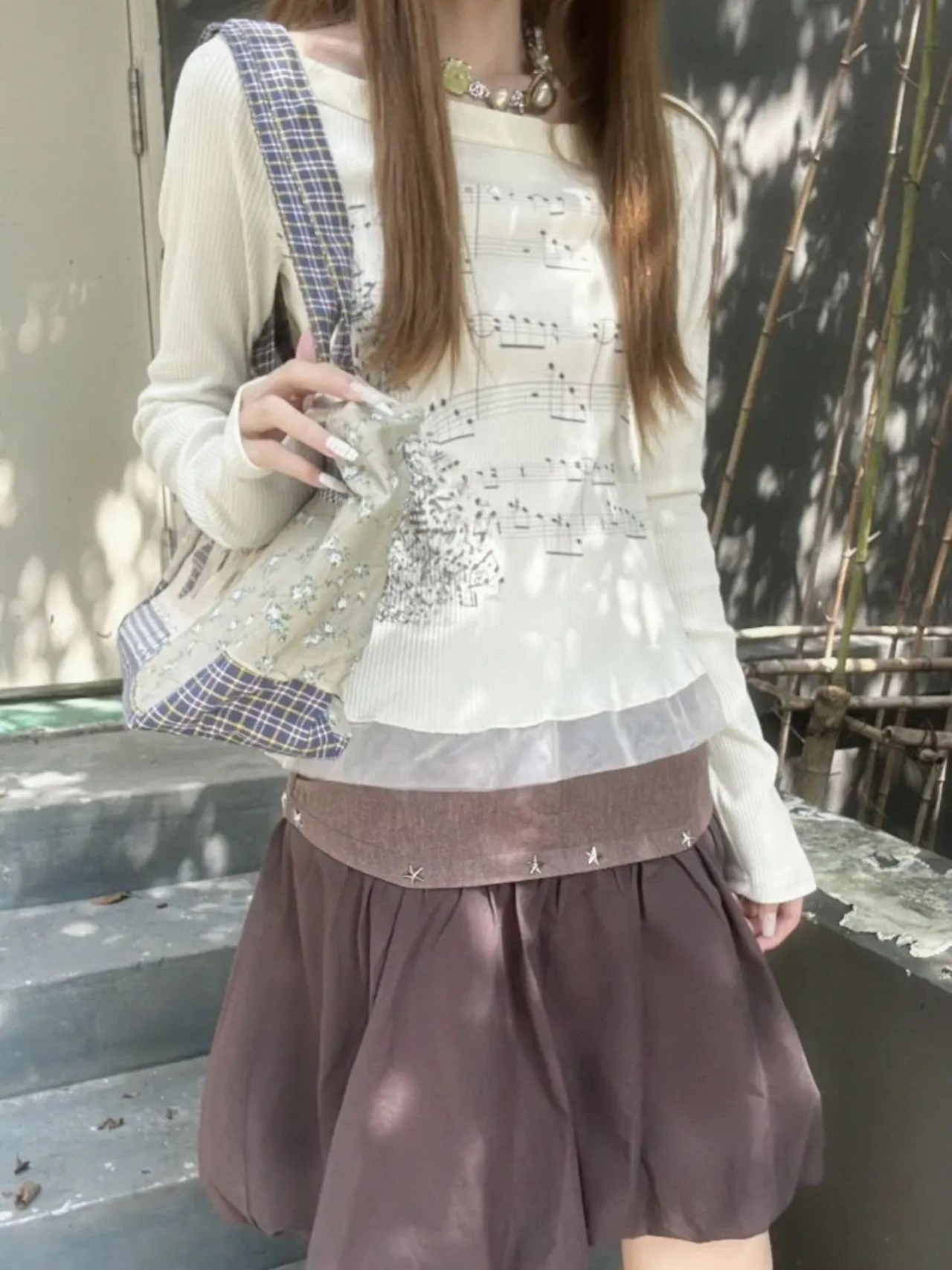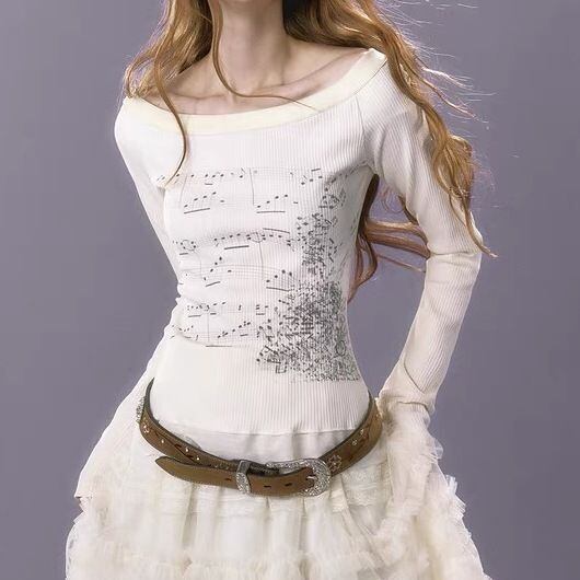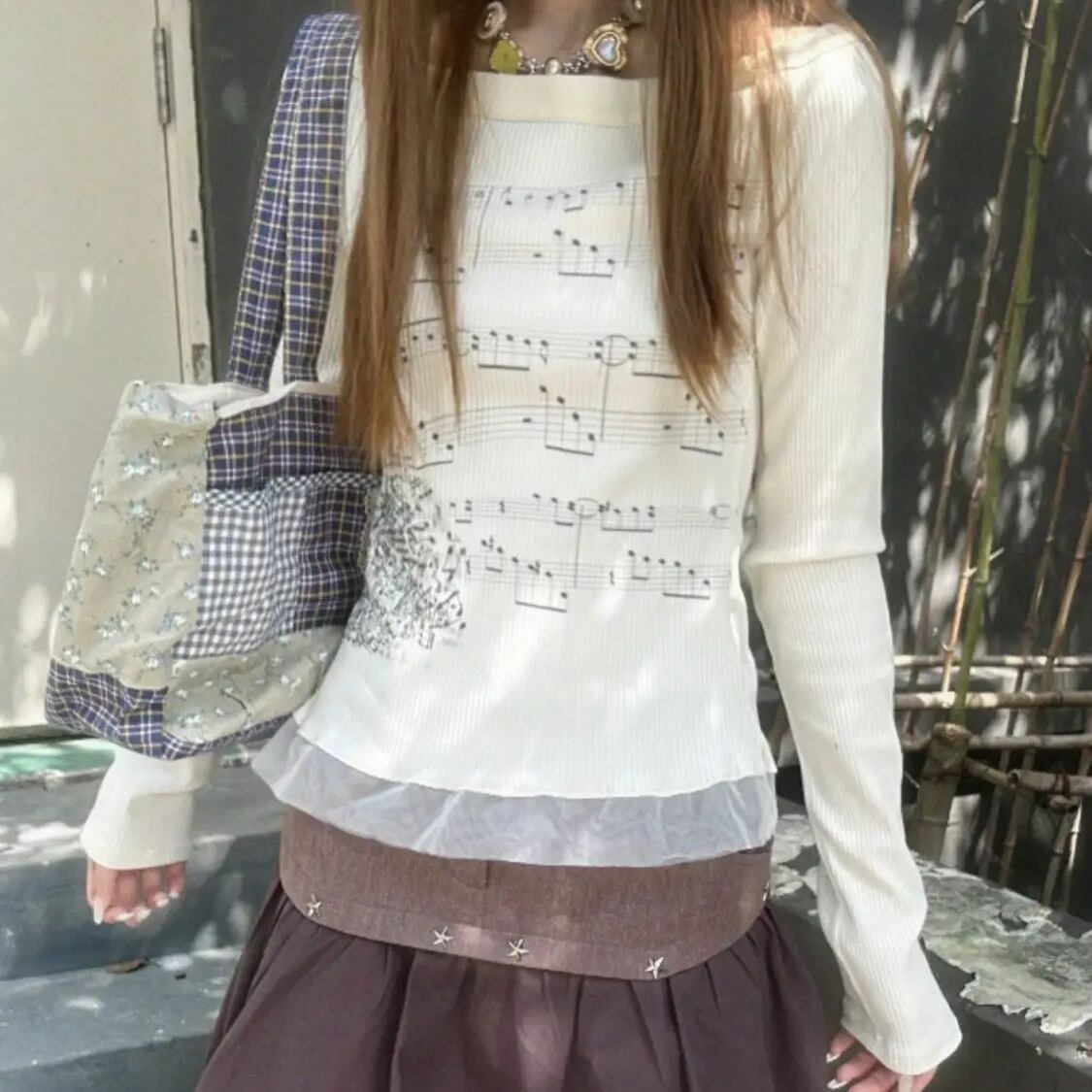 楽譜のロゴプリントがY2Kでゆる可愛い雰囲気のシンプルTシャツです。