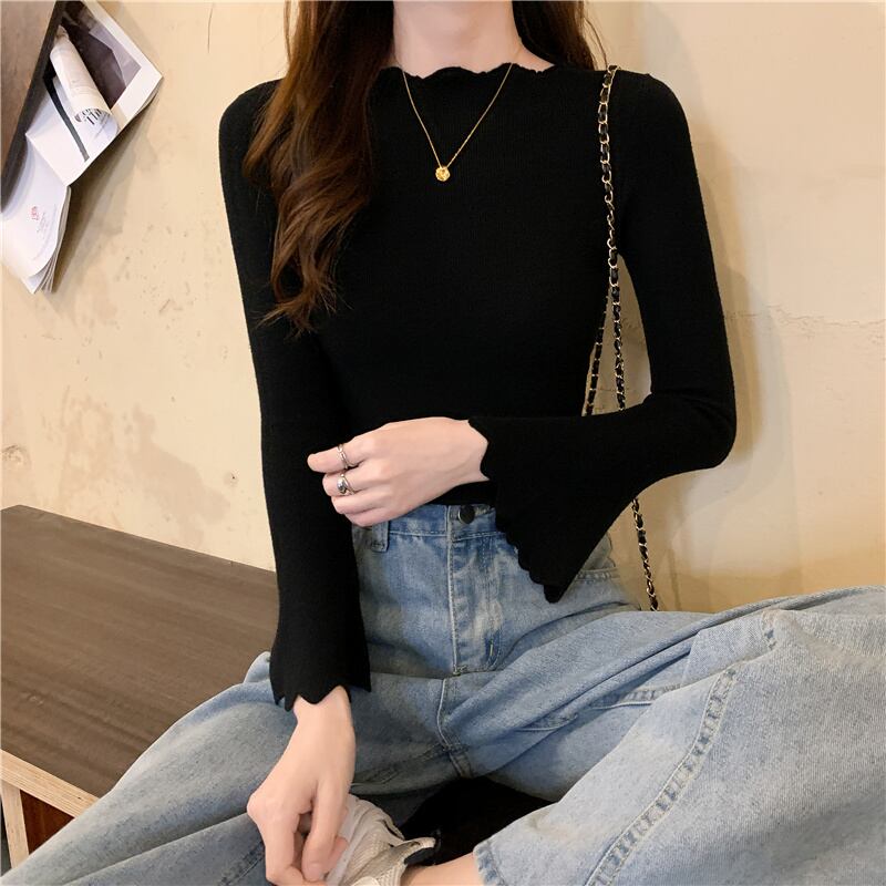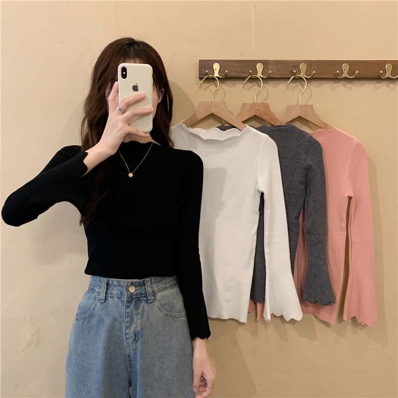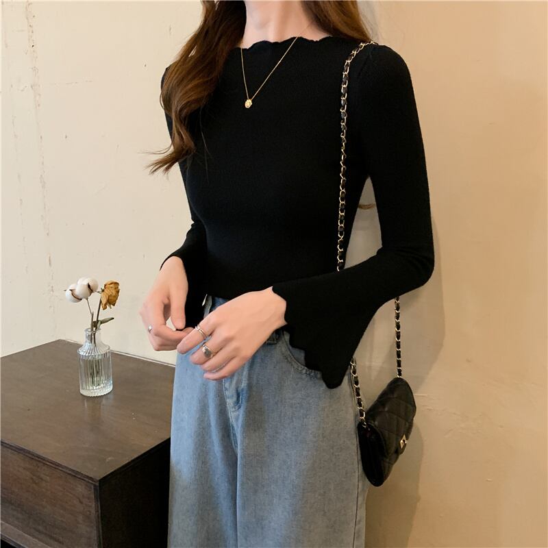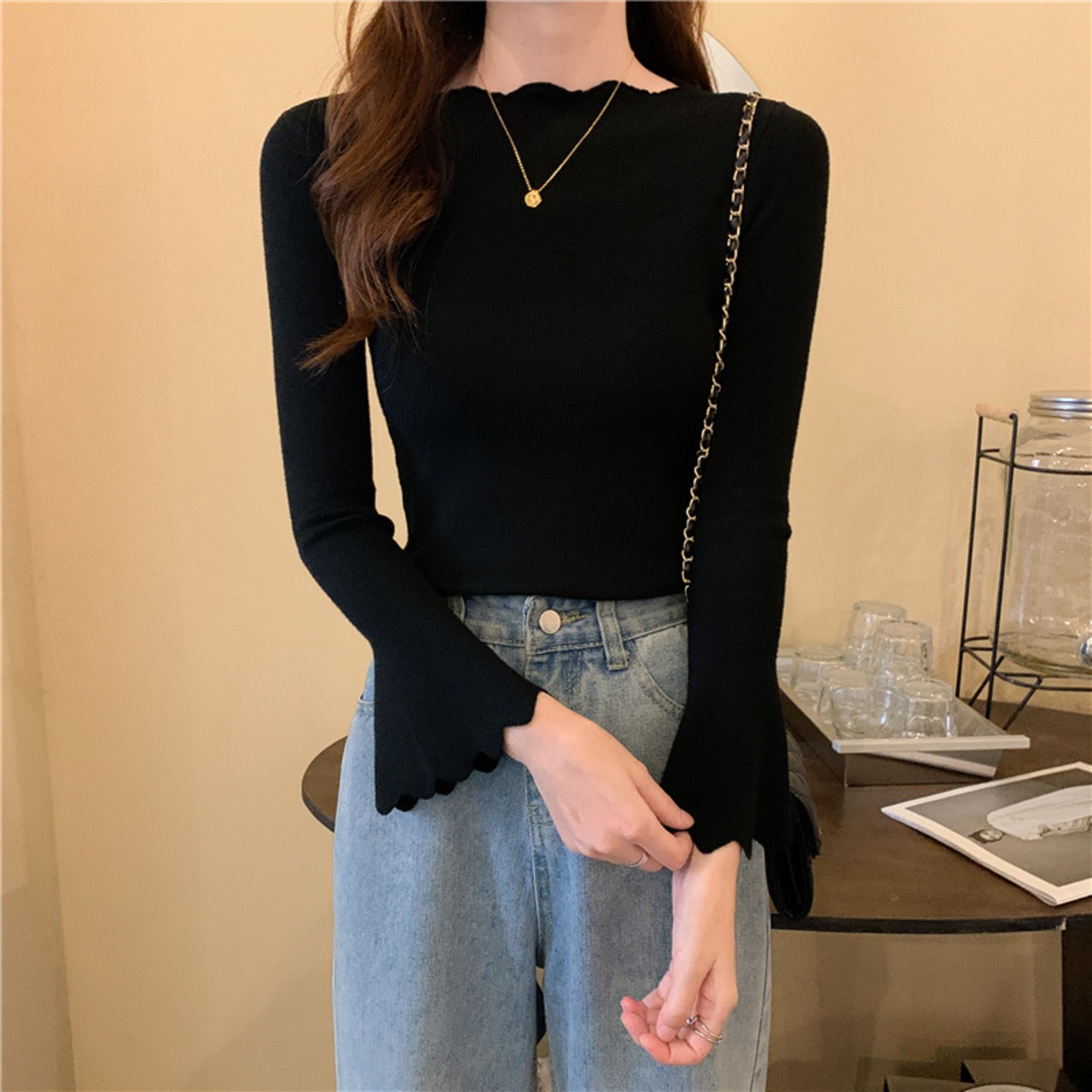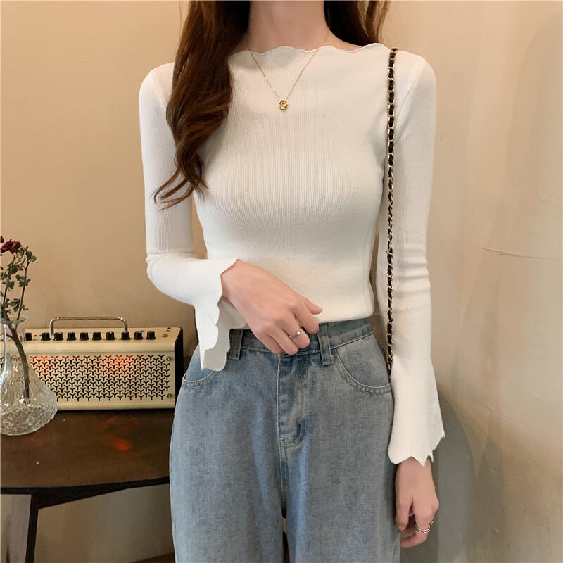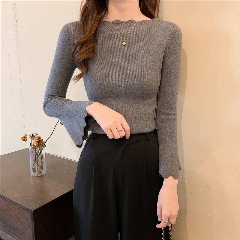 セーター ニット トップス ボートネック ショート丈 メロウ タイト リブ フレアスリーブ スカラップ ウェーブ ワンサイズ 長袖 大人可愛い シンプル 上品 お洒落 こなれ感 無地 10代 20代 30代 40代 オフィス ビジネス OL 通勤 学生 通学 デート お出かけ 休日 イベント デイリー 普段使い ホワイト ブラック グレー ピンク | GVON~ファッションショップ~