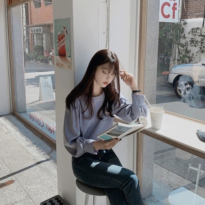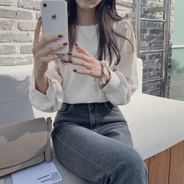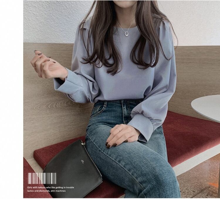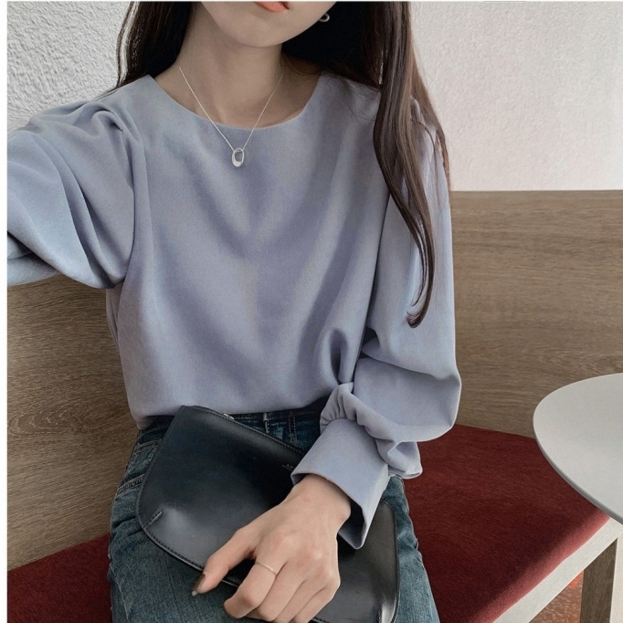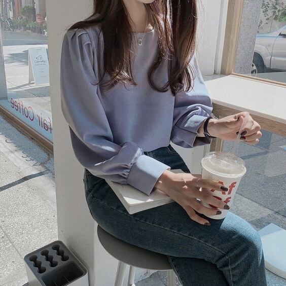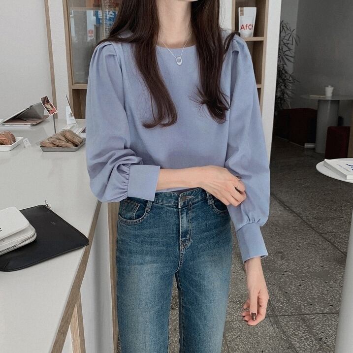 ブラウス トップス レトロ ノーカラー クラシカル プルオーバー パフスリーブ 長袖 大人可愛い シンプル 上品 お洒落 こなれ感 無地 10代 20代 30代 40代 オフィス ビジネス OL 通勤 学生 通学 デート お出かけ 休日 イベント デイリー 普段使い S M L XL ブルー アプリコット | GVON~ファッションショップ~