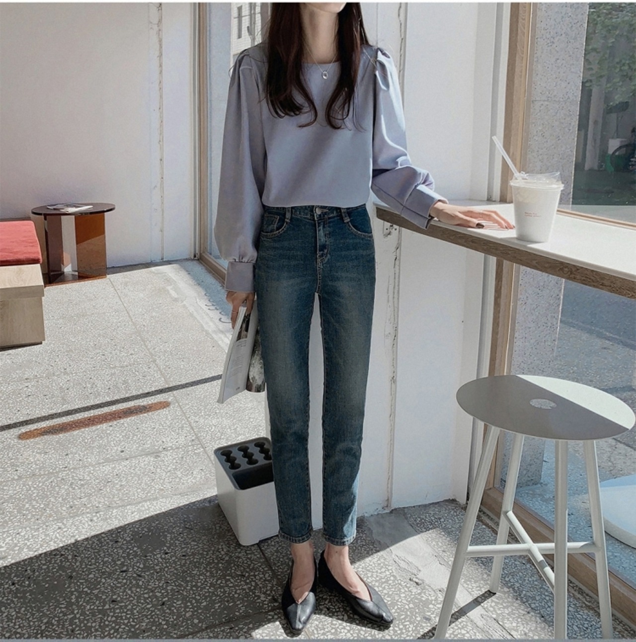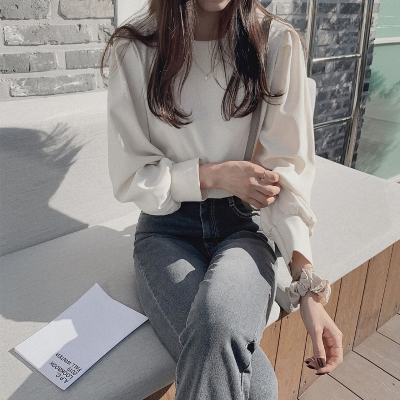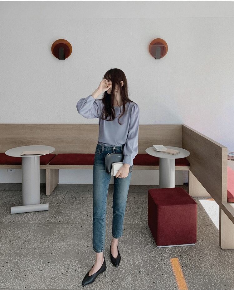 ブラウス トップス レトロ ノーカラー クラシカル プルオーバー パフスリーブ 長袖 大人可愛い シンプル 上品 お洒落 こなれ感 無地 10代 20代 30代 40代 オフィス ビジネス OL 通勤 学生 通学 デート お出かけ 休日 イベント デイリー 普段使い S M L XL ブルー アプリコット | GVON~ファッションショップ~