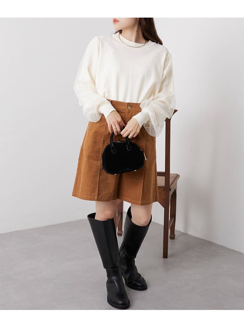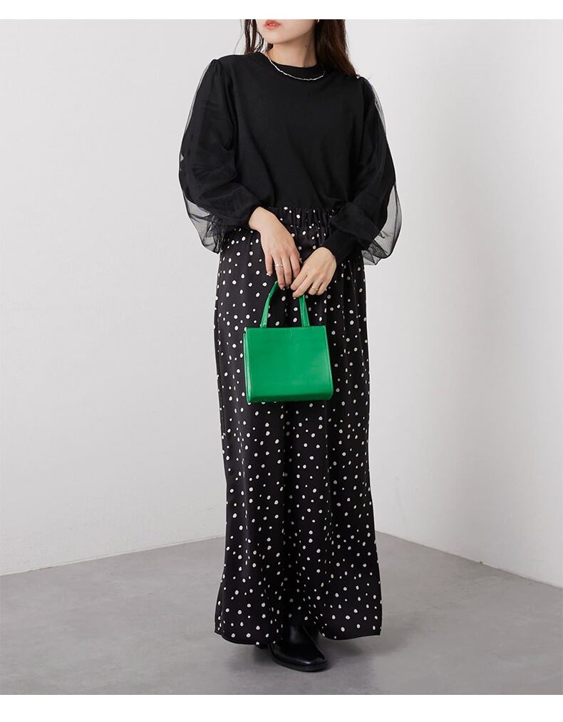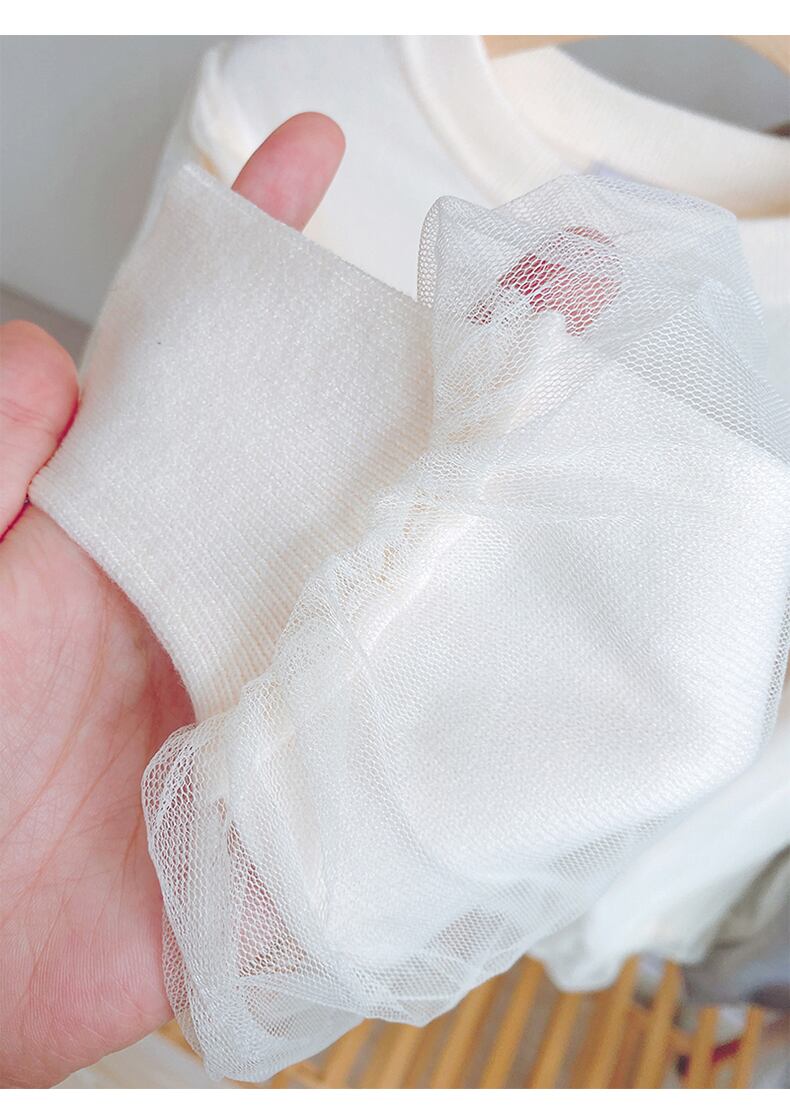 ドッキング切り替えのチュール袖デザインがトレンド感を演出し、透け感が女性らしさを引き立てます。シンプルでありながらも愛らしい一枚は、大人可愛いスタイルを叶えること間違いなし。自然な色合いの無地デザインが、どんなスタイリングにも合わせやすく、大人可愛い雰囲気を演出します。