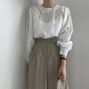 肩周りのタックでボリュームたっぷりな袖がモードな雰囲気のブラウストップスが登場しました!