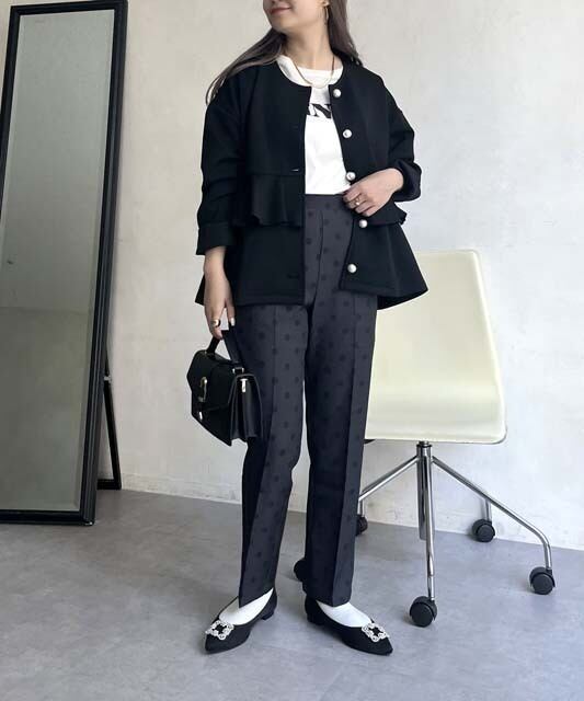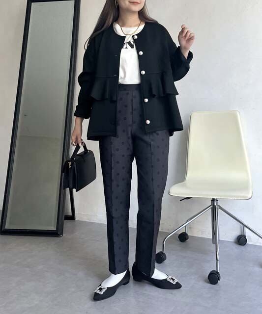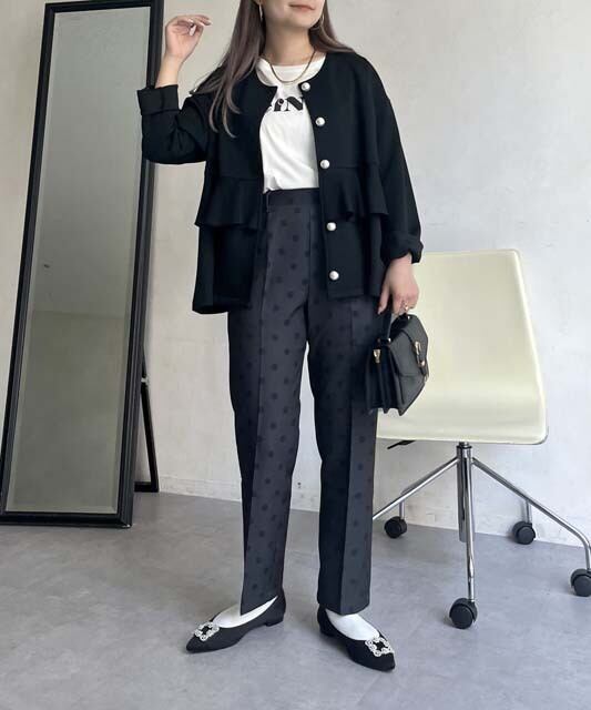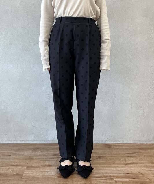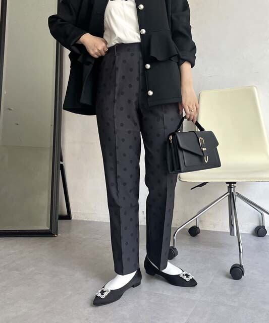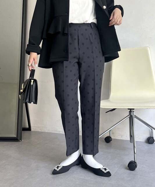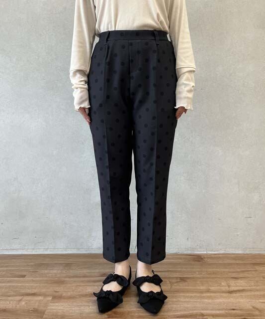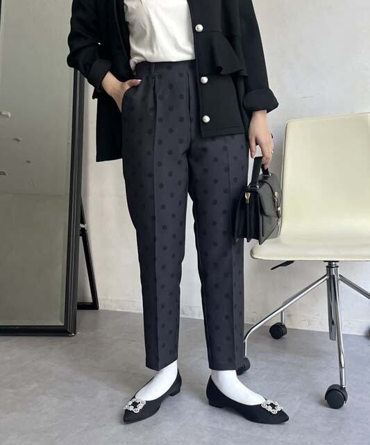 大人の女性にぴったりな、パンツ センタープレス テーパードパンツが登場しました。繊細なドット柄が上品さを演出し、オールシーズン着用できるので、パーティや二次会など様々なシーンで活躍します。脚長効果が期待できるセンタープレスデザインと、程よいテーパードシルエットが美しいラインを作り出します。