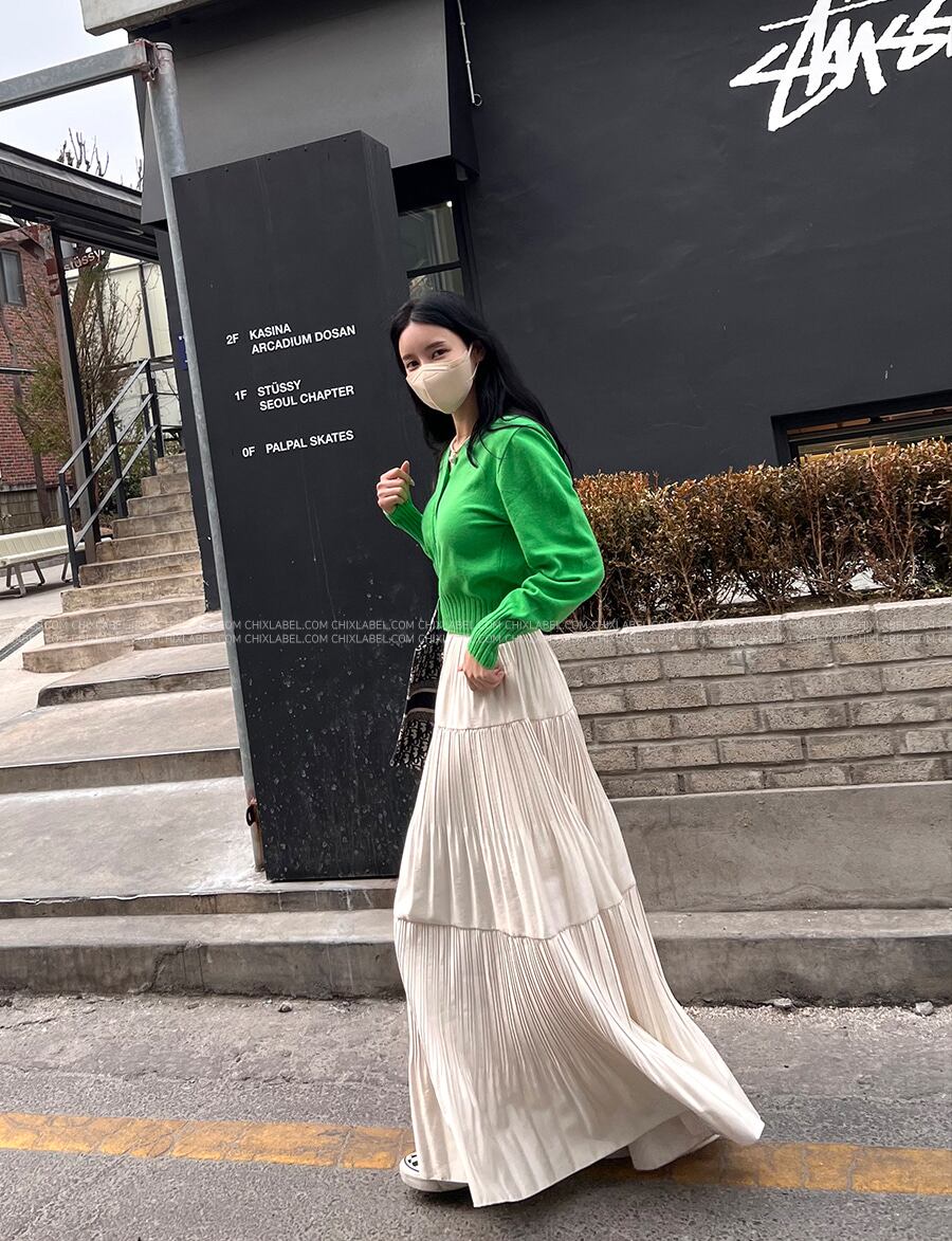 このティアードプリーツスカートは、一枚で女性らしいシルエットを演出してくれるので、デートやお出かけにもおすすめ。ヒールと合わせてきれいめなコーディネートも楽しめます。さらに、お手入れも簡単で、アイロンいらずの便利さも魅力です。