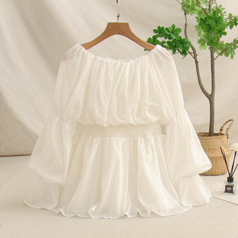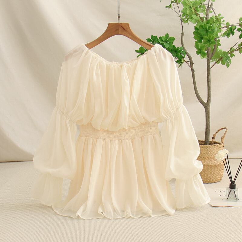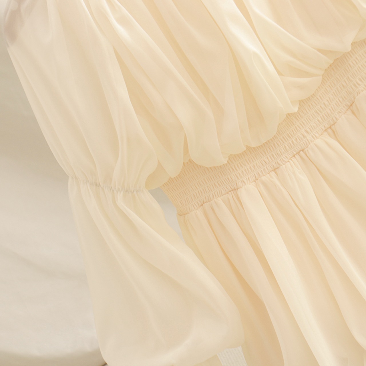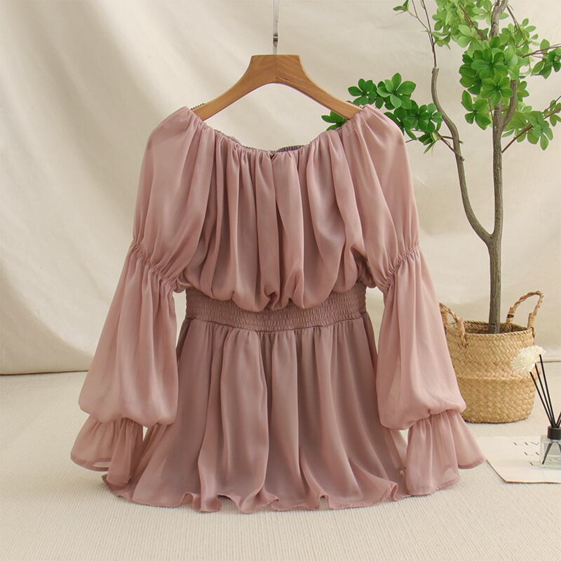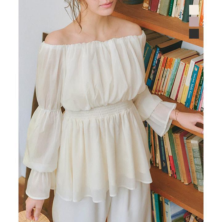 ブラウス トップス シフォン オフショルダー ボートネック シャーリング 変形 パフスリーブ プルオーバー 透け感 シアー 長袖 ワンサイズ 大人可愛い シンプル 上品 お洒落 こなれ感 無地 10代 20代 30代 40代 オフィス ビジネス OL 通勤 学生 通学 デート お出かけ 休日 イベント デイリー 普段使い ベージュ ピンク ブラック ホワイト | GVON~ファッションショップ~