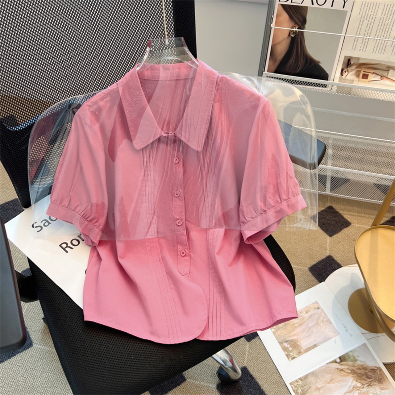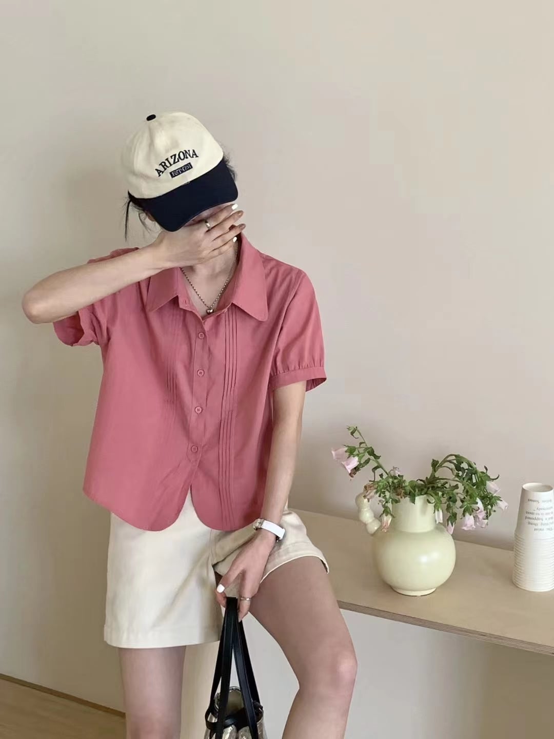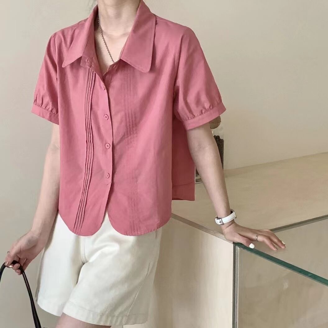 ブラウス トップス レギュラーカラー ピンタック ラウンドヘム 前開き 半袖 大人可愛い シンプル 上品 お洒落 こなれ感 無地 10代 20代 30代 40代 オフィス ビジネス OL 通勤 学生 通学 デート お出かけ 休日 イベント デイリー 普段使い ワンサイズ イエロー ピンク | GVON~ファッションショップ~