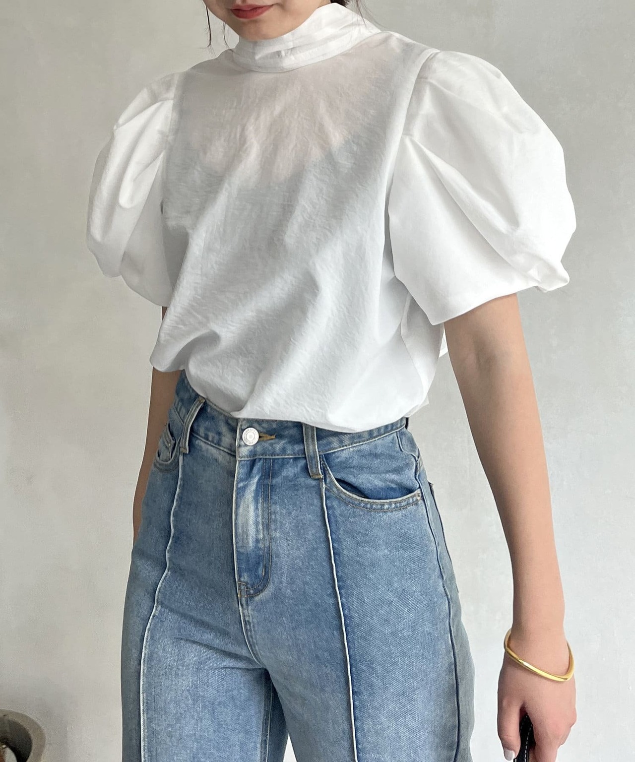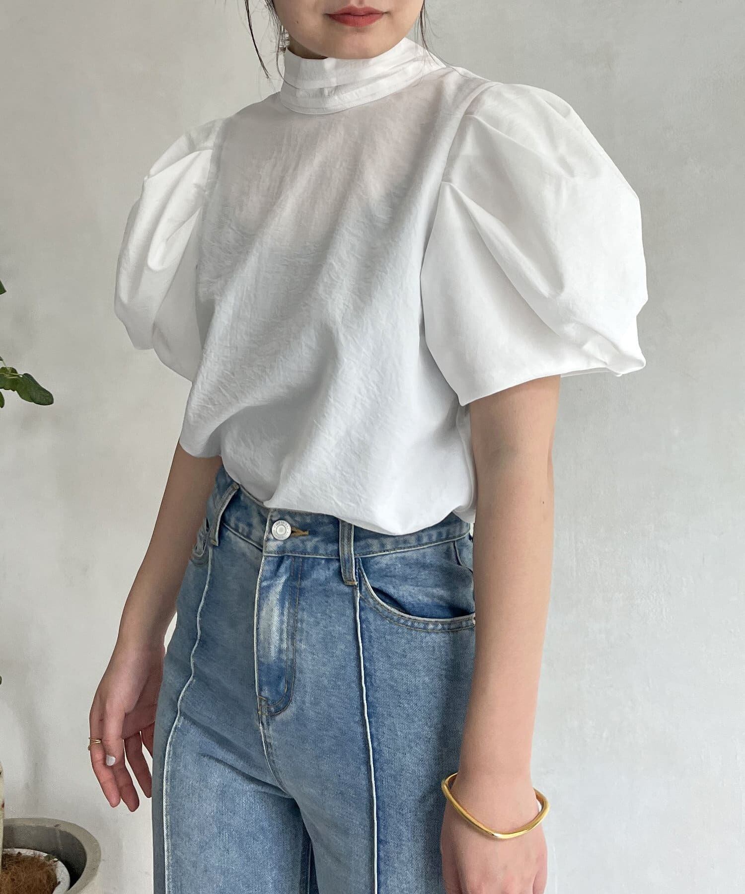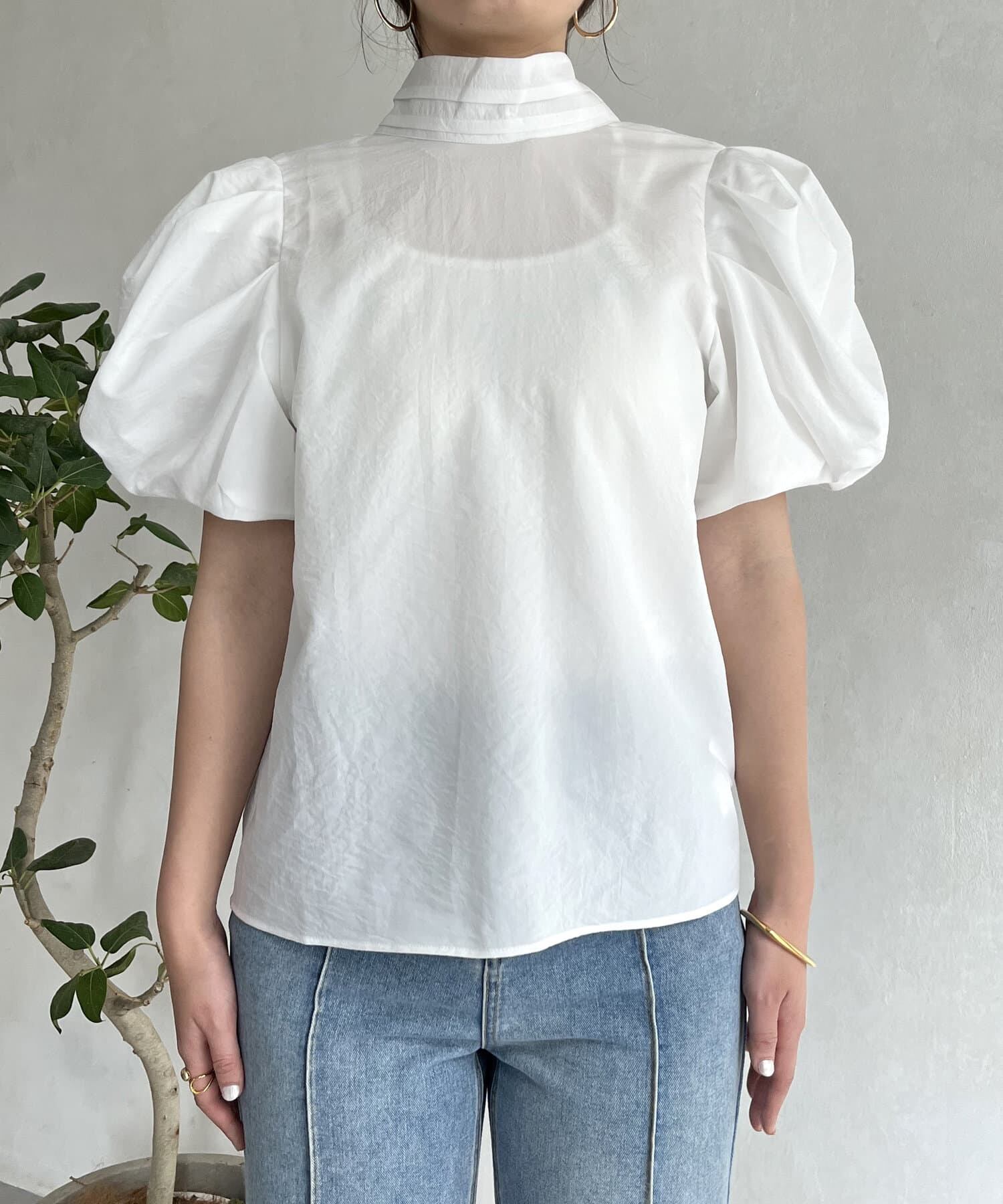 タックをあしらってぽわんとしたボリューム感が可愛い洗練されたブラウスです。