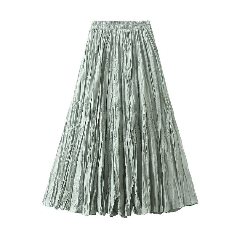 エレガントな雰囲気漂う、クシュプリーツスカートが登場しました。ミモレ丈で女性らしいラインを演出し、シワ加工が大人可愛い雰囲気を醸し出します。フェミニンでお出かけやデートにぴったりな一着です。