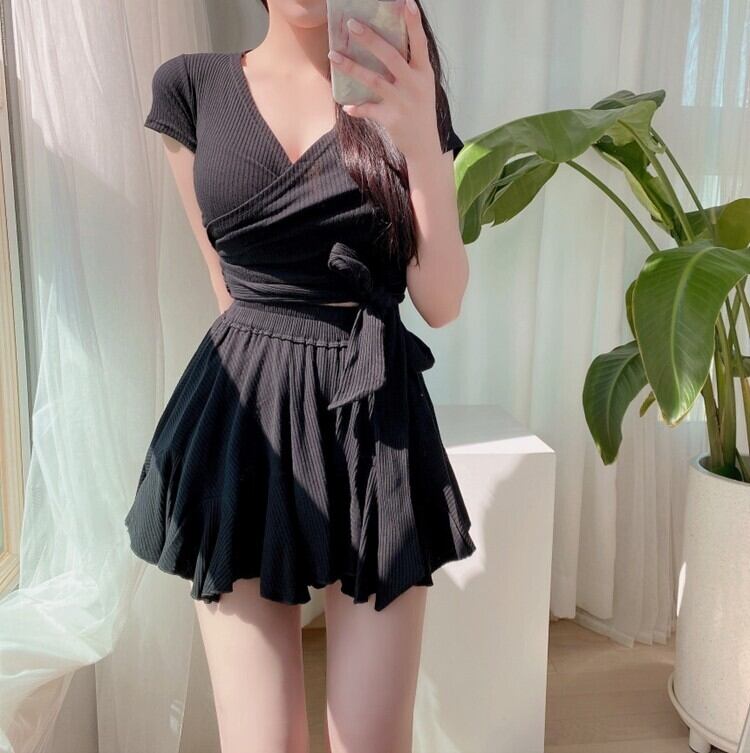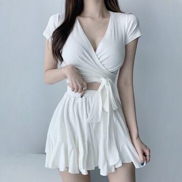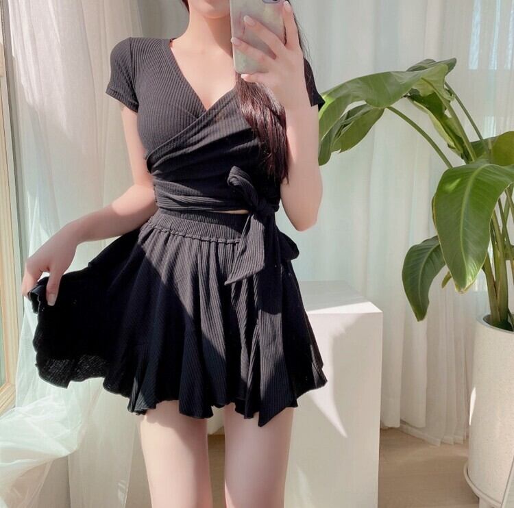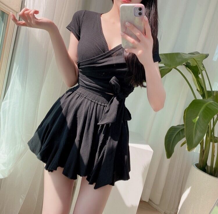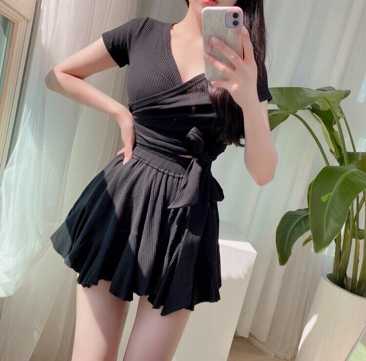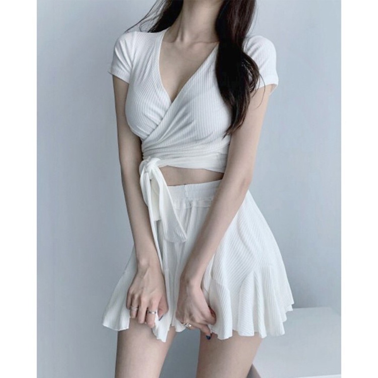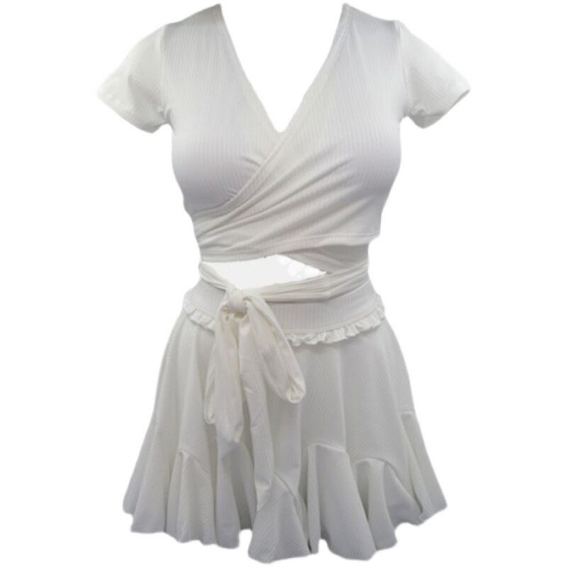 タンキニ 水着 スイムウェア 2点セット 上下セット 体型カバー 半袖 カシュクール イレギュラーヘム ミニスカート インナーパンツ付き リボン セクシー ハイウエスト セパレート デザイン シック パッド付き ホワイト ブラック ピンク 大人可愛い 大人カジュアル おしゃれ 抜け感 セクシー ラブリー キュート 盛れる きれいめ こなれ感 海 プール リゾート 華やか ビーチ インスタ映え スタイルアップ リゾート 存在感 個性的 | GVON~ファッションショップ~