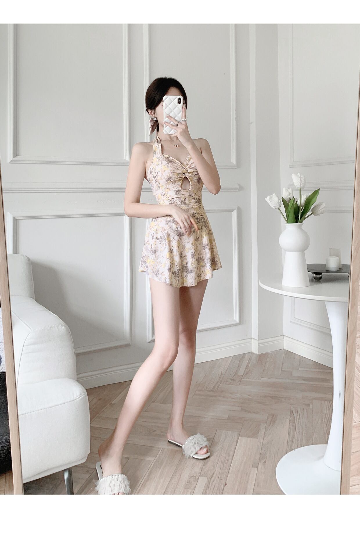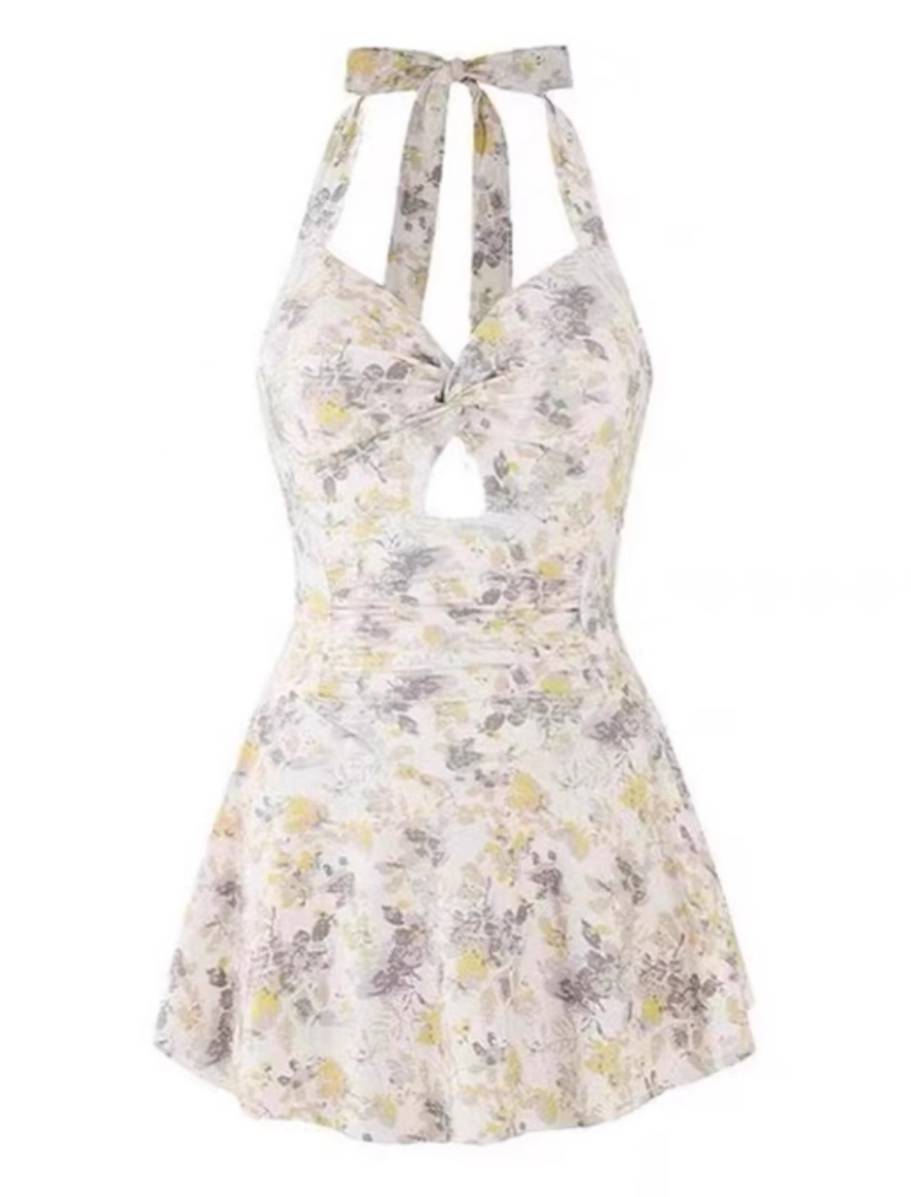 花柄水着 フロントギャザー ワンピース水着は、大人可愛いフェミニンな印象を演出してくれるアイテムです。華やかな花柄が目を引く一方で、シックな色合いで大人の女性にもぴったり。ホルターネックデザインが首元を美しく見せてくれるだけでなく、フロントのギャザーが体のラインをきれいに引き立てます。