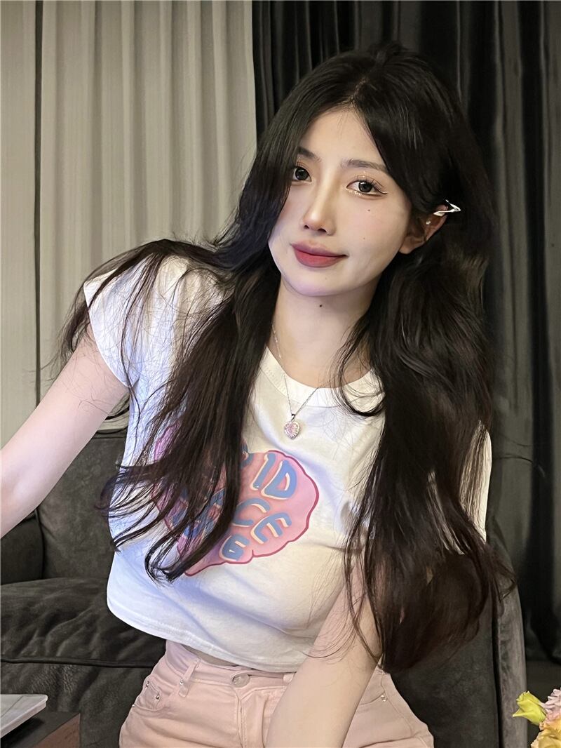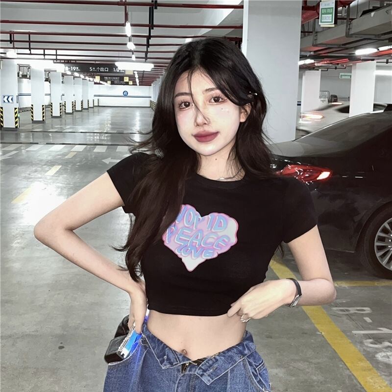 Y2Kなハート柄プリントとレタリングが存在感抜群なミニマルなTシャツです。