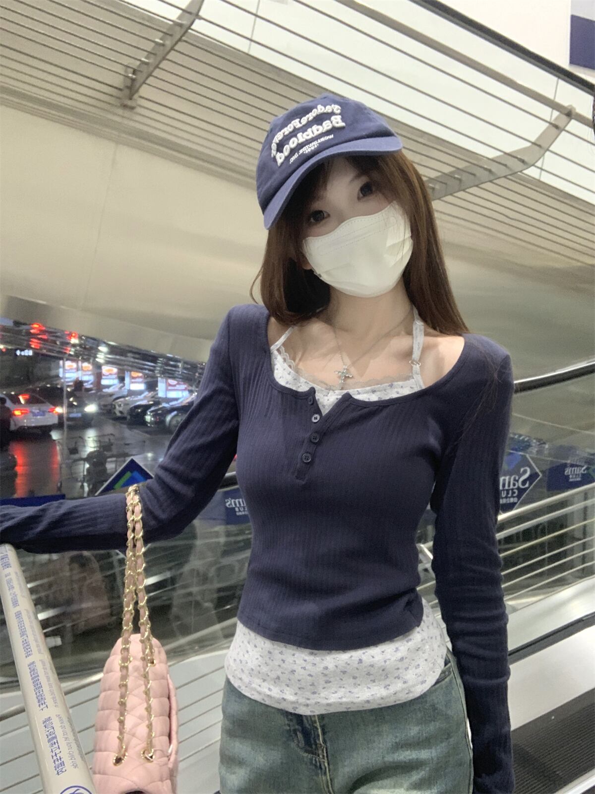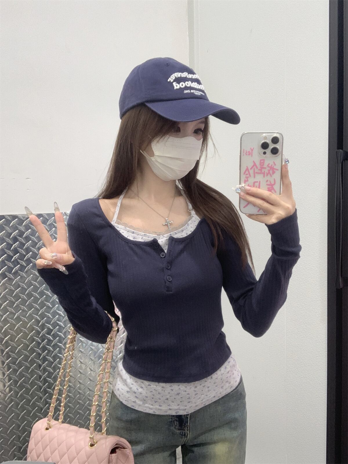 シンプルで上品なデザインのフェイクレイヤードのヘンリーネックカットソーです。小花柄とさりげないレースが可愛いキャミソールをレイヤードしたようなバレエコアなデザインがオシャレ。ショート丈でタイトなデザインなので、女性らしいシルエットを演出します。春から秋冬のコーディネートにぴったりです。