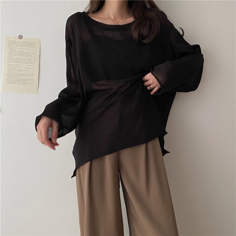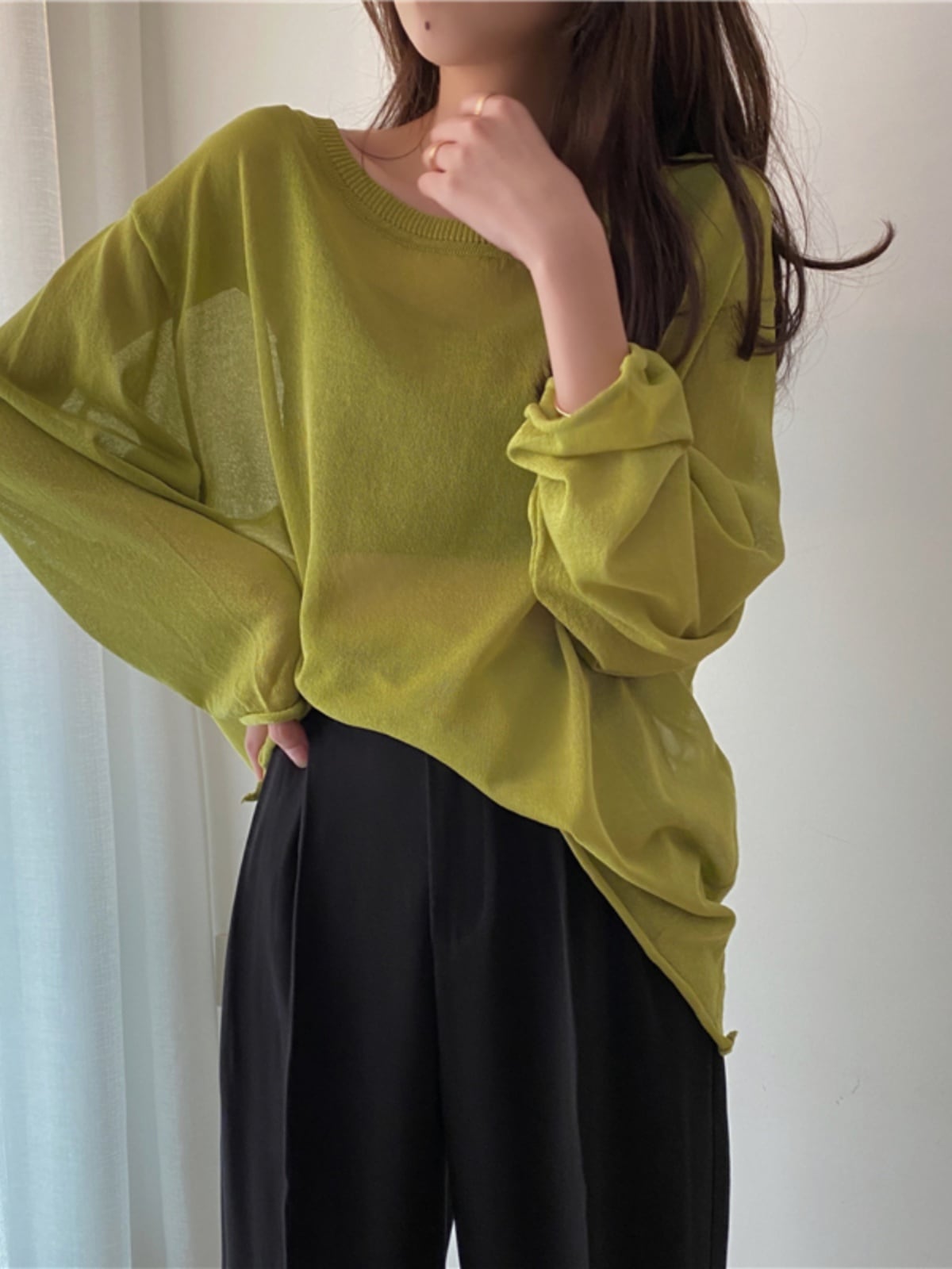 華やかさと上品さを兼ね備えた、透け感のあるニットセーター。ゆったりとしたラウンドネックとオーバーサイズで、大人可愛い印象を演出します。透け感のあるデザインで、レイヤードスタイルに最適な女性らしい魅力を引き出します。