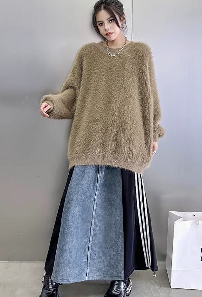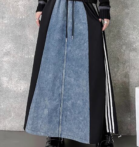 トレンド感満載のデニム生地と、独特なスプライシングデザインがおしゃれな一着です。膝下のAラインシルエットが女性らしさを引き立て、どんなトップスとも相性抜群。普段使いからパーティーシーンまで、様々なシーンで活躍すること間違いなしです。