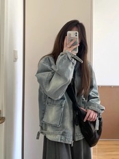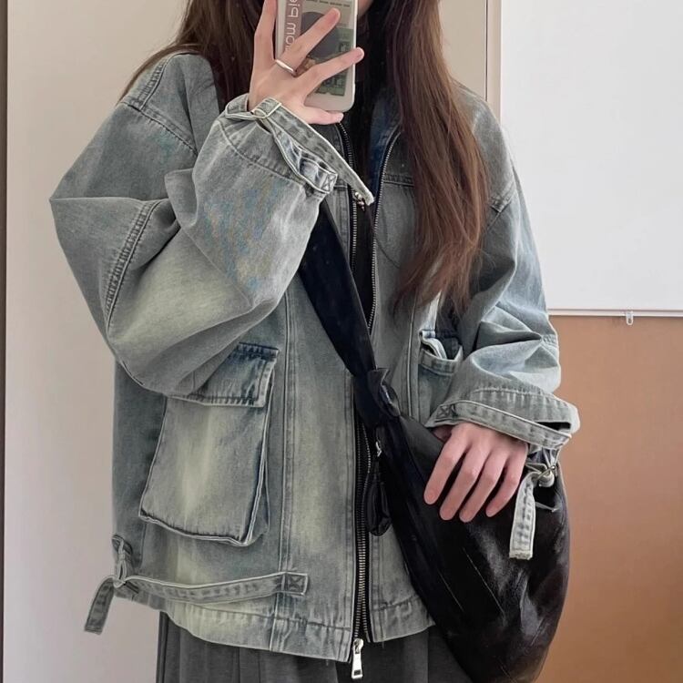 シンプルでありながら、こなれ感たっぷりの大人可愛いデニムジャケットです。オーバーサイズのシルエットが、マニッシュな中にも女性らしさをプラスしてくれます。色褪せたデニム素材のヴィンテージ調が、カジュアルなコーディネートに程よいアクセントを添えてくれます。