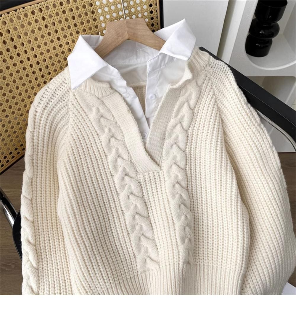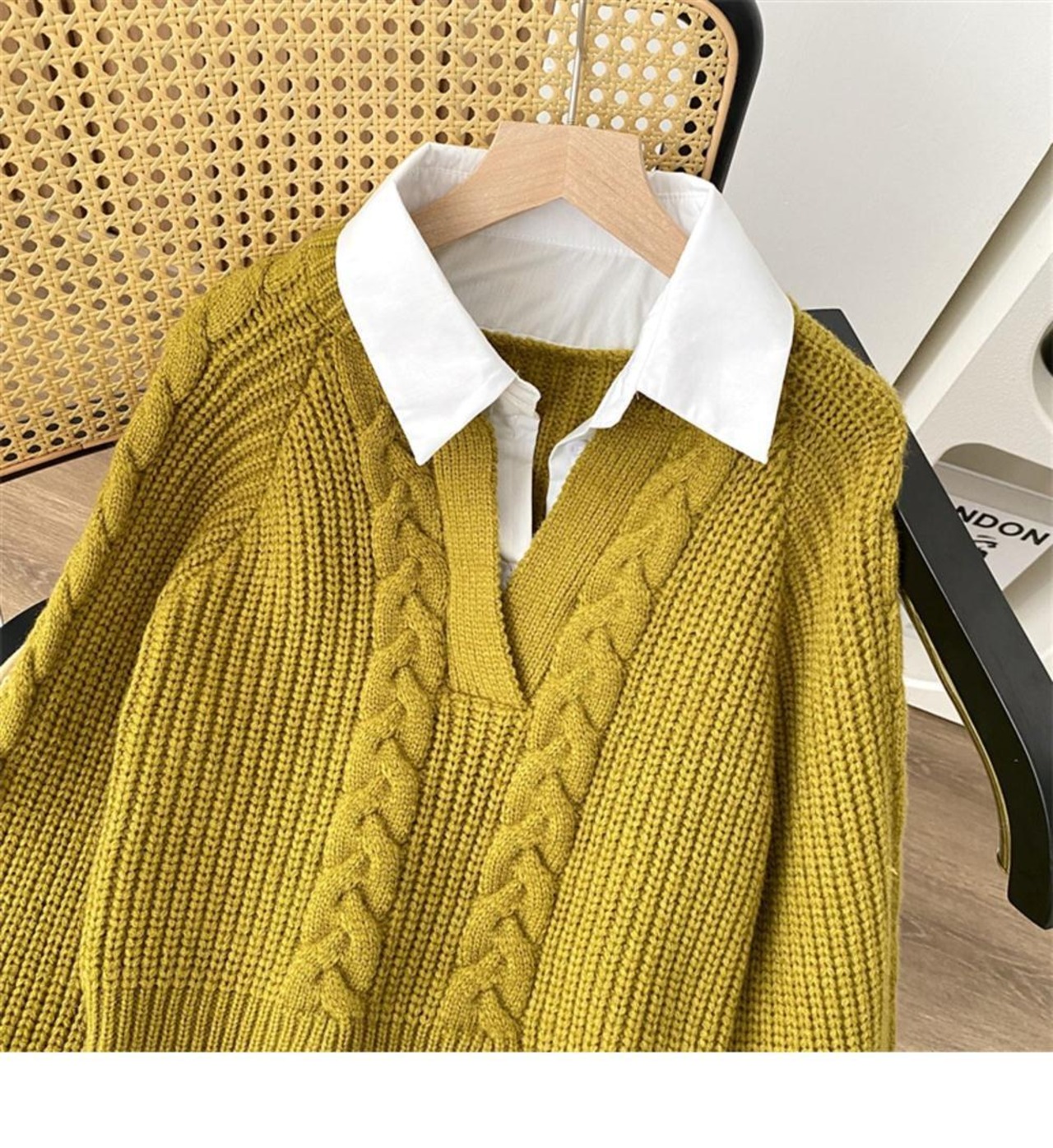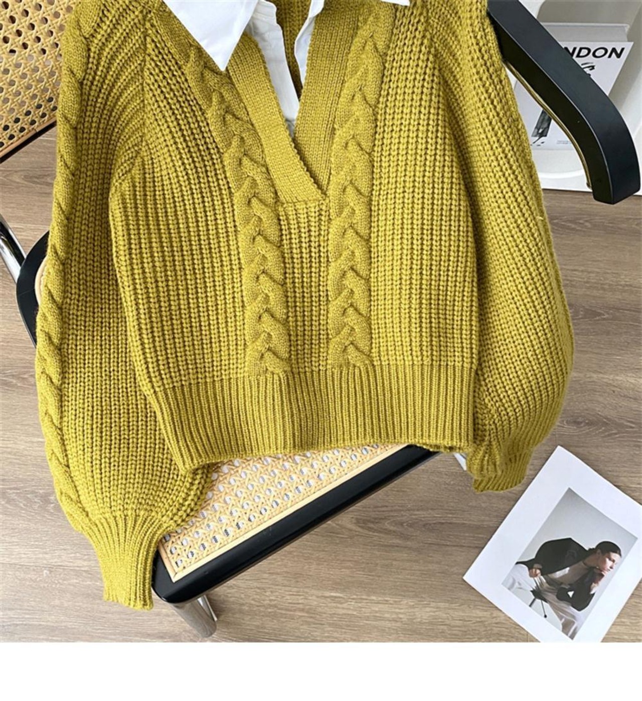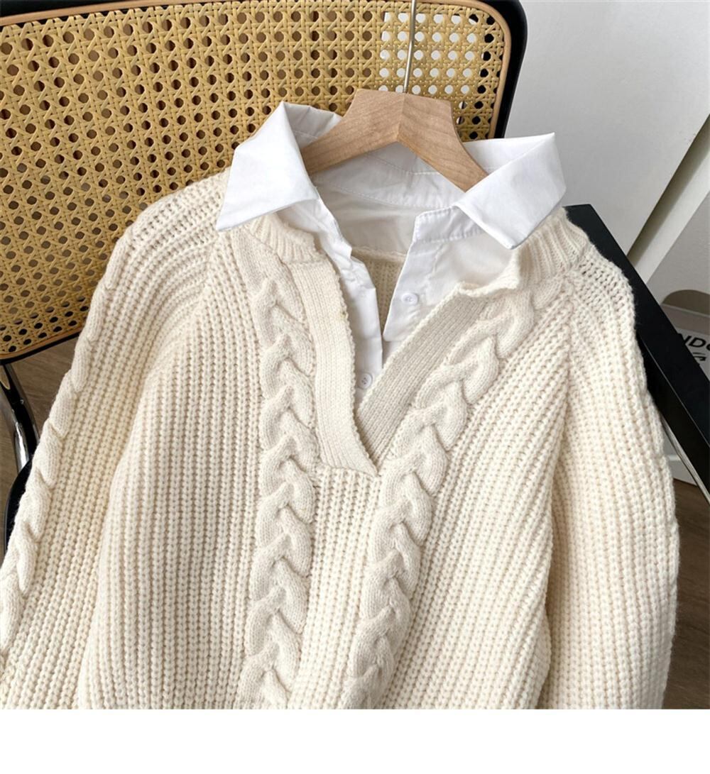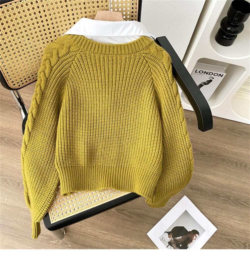 ニットセーターと大きめ襟のブラウスをレイヤードしたようなトップスが登場しました!