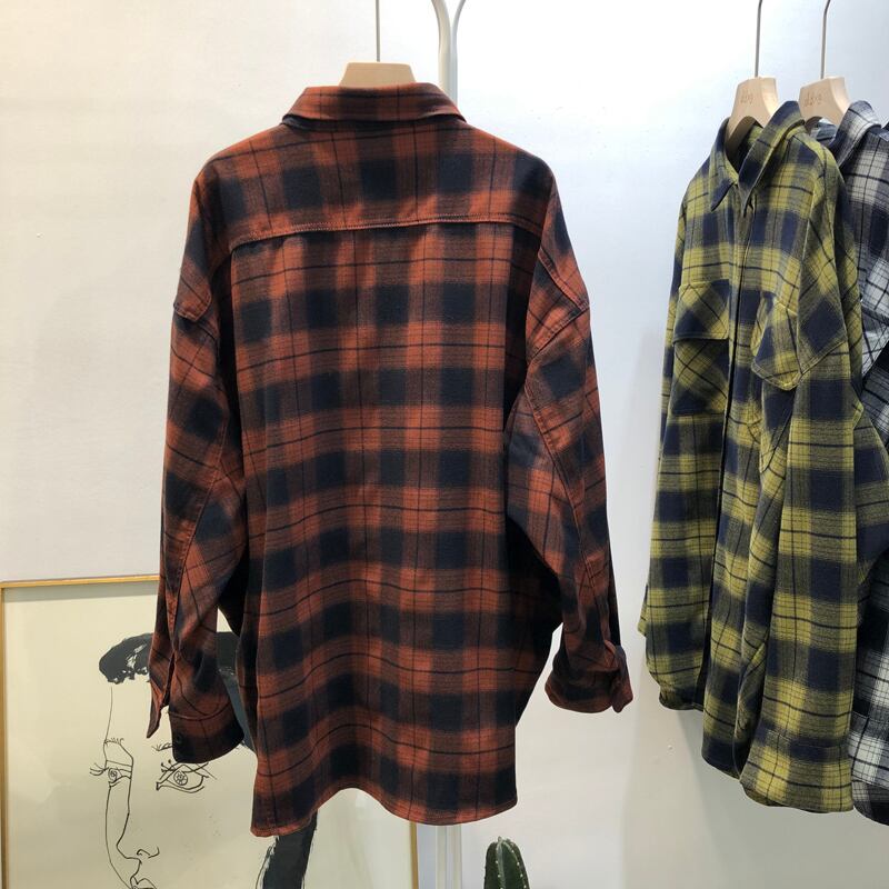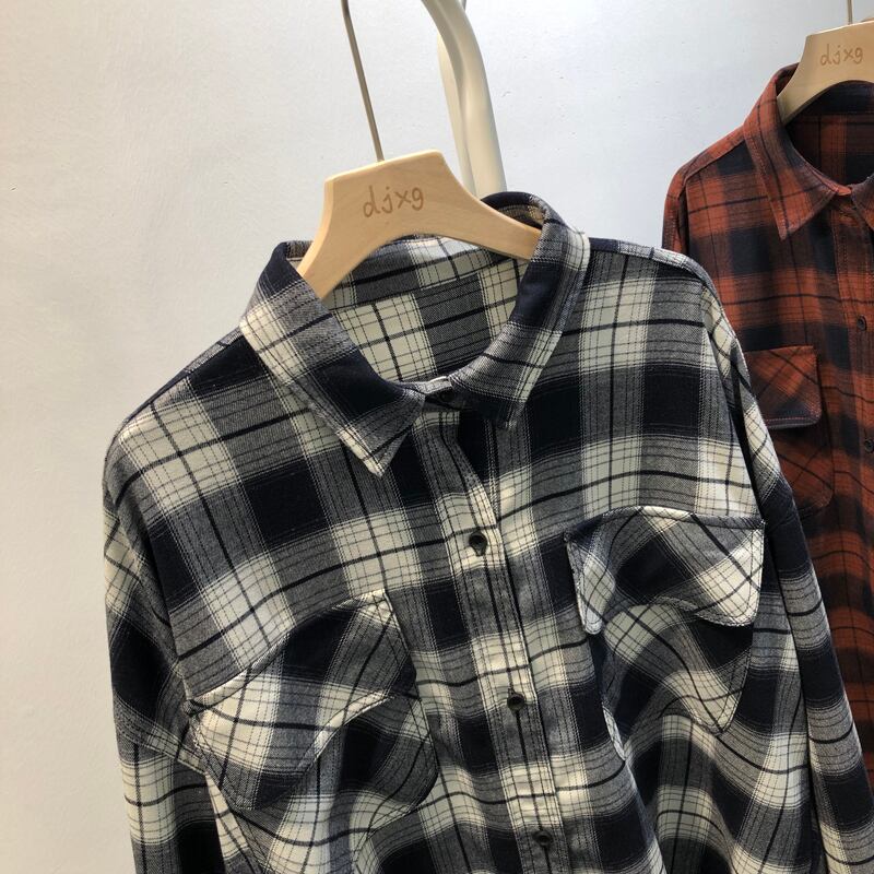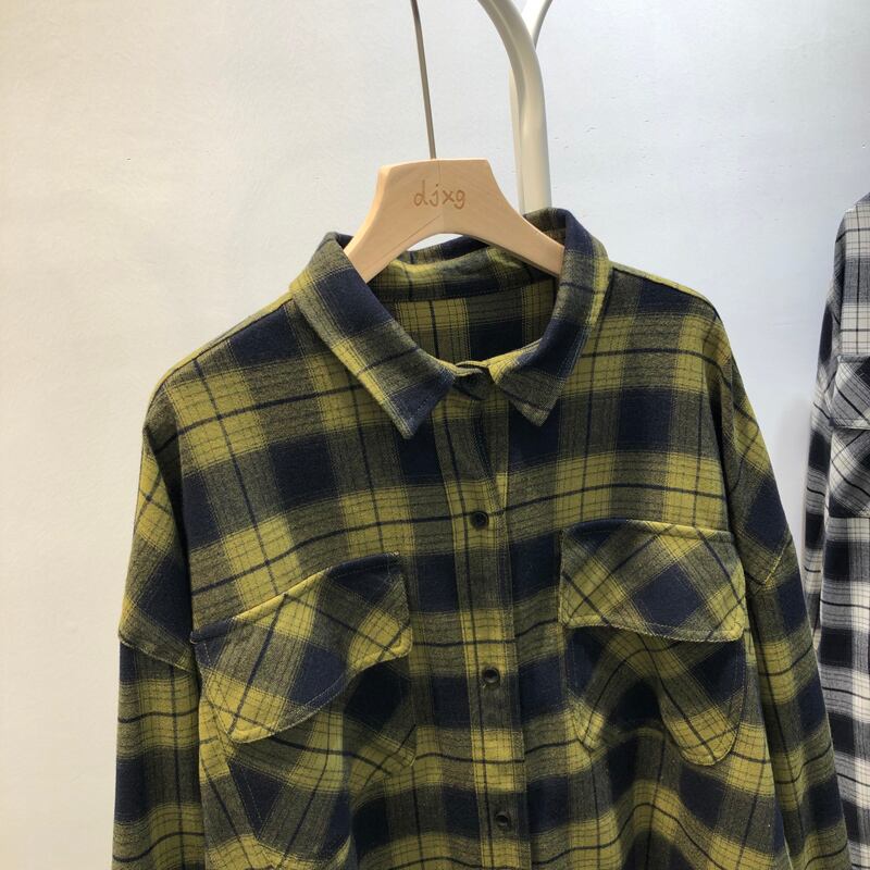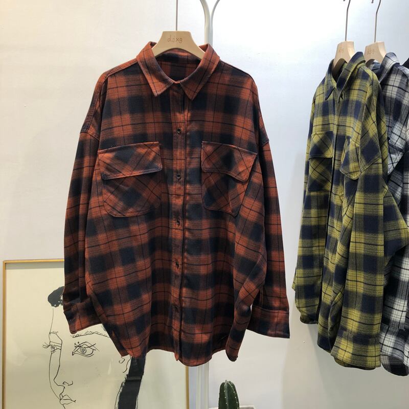 レトロなチェックパターンが可愛い、オーバーサイズがメンズライクなシャツブラウスです。