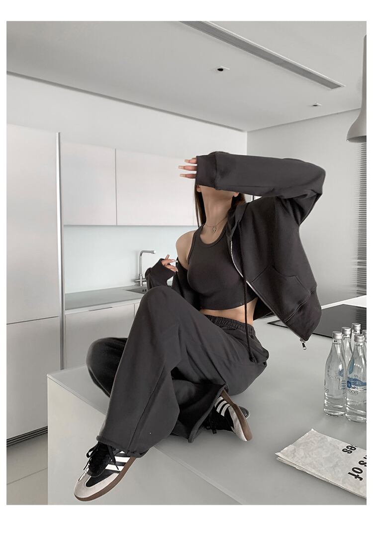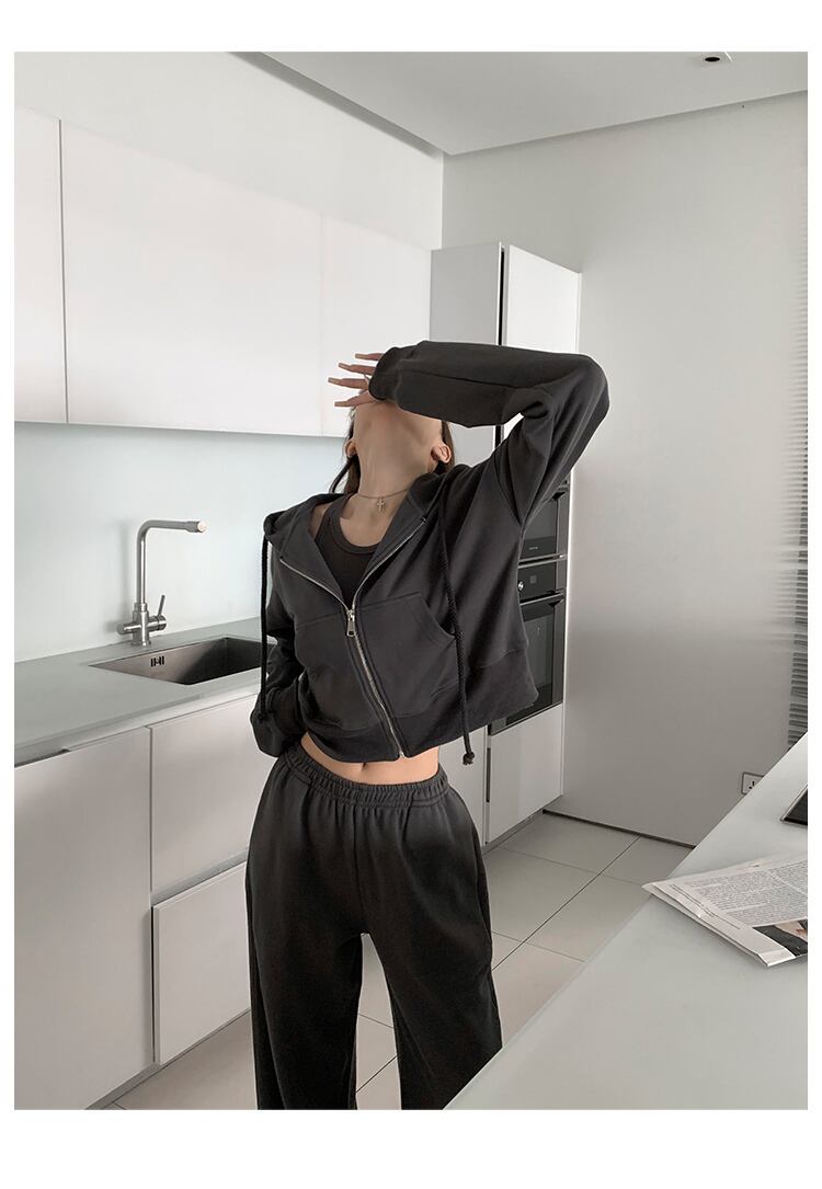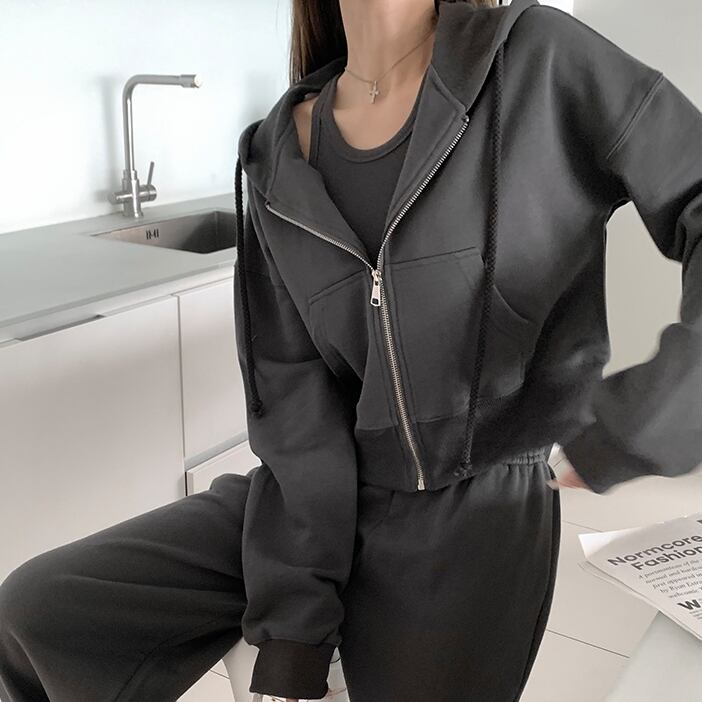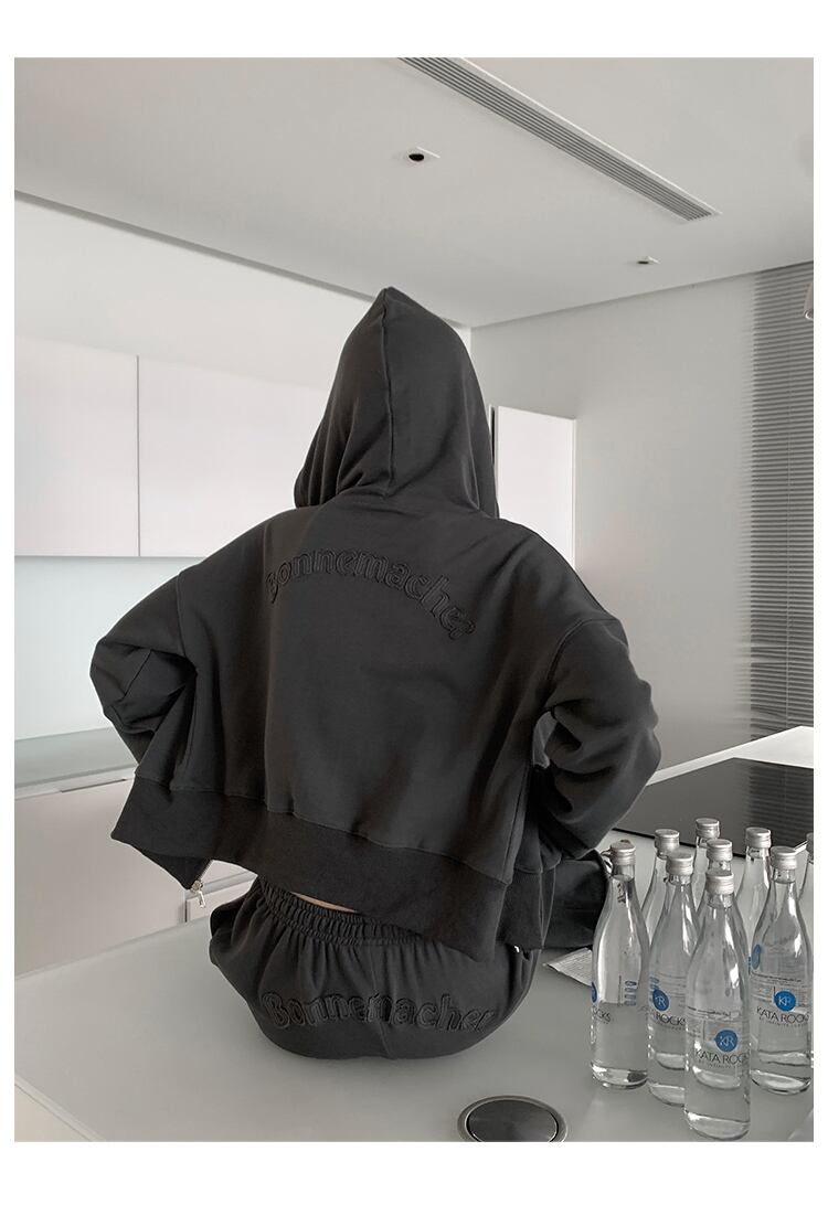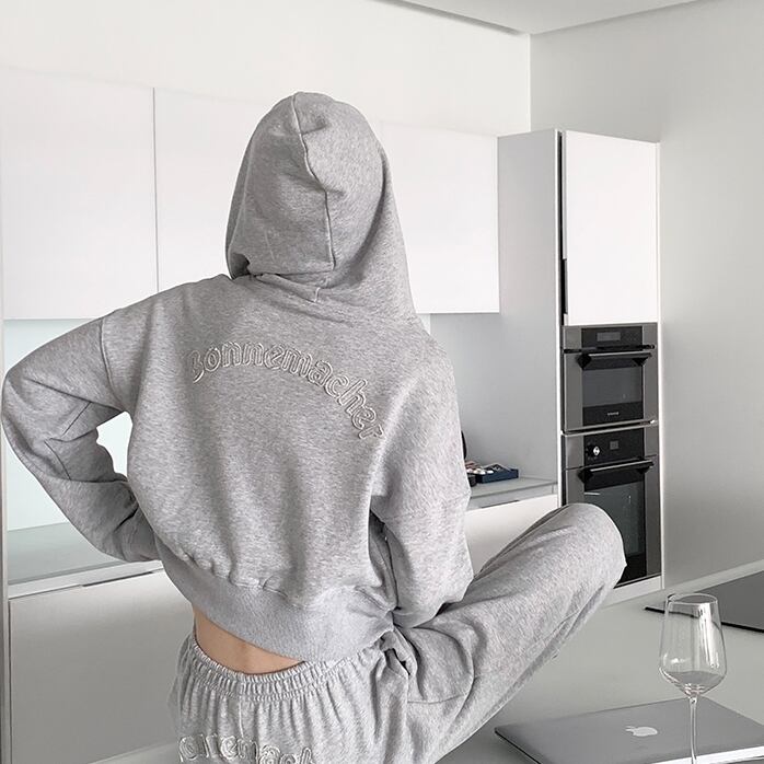 普段使いにぴったりのベーシックなショート丈パーカートップスです。さりげないワントーンでバックに刺繍をあしらったこなれたデザイン。ドロップショルダーのパフスリーブがラフでカジュアルな華やかさを演出します。シンプルなワントーンデザインなので、どんなテイストにも相性抜群。また、クルーネックで首元をすっきりと見せることができます。ミニマルなサイズ感が愛らしく、春から秋冬のコーディネートにぴったりですどんなスタイルにも相性抜群です。