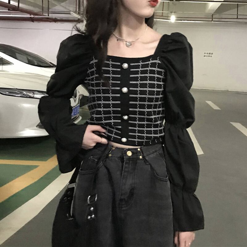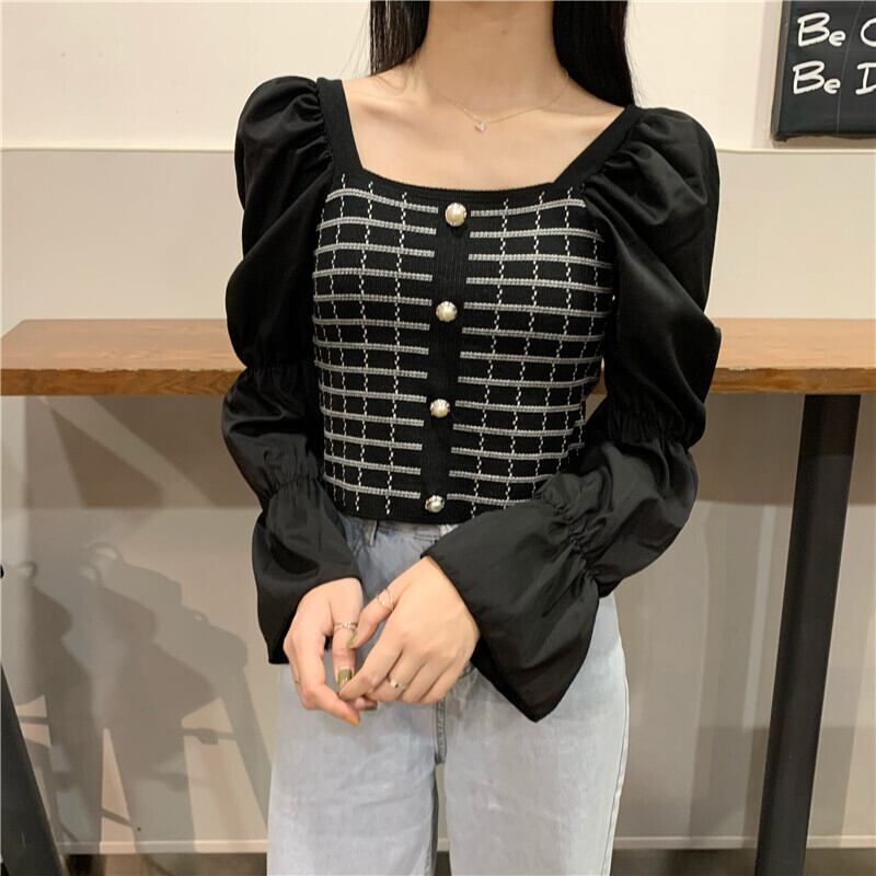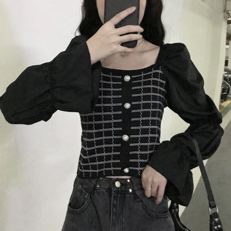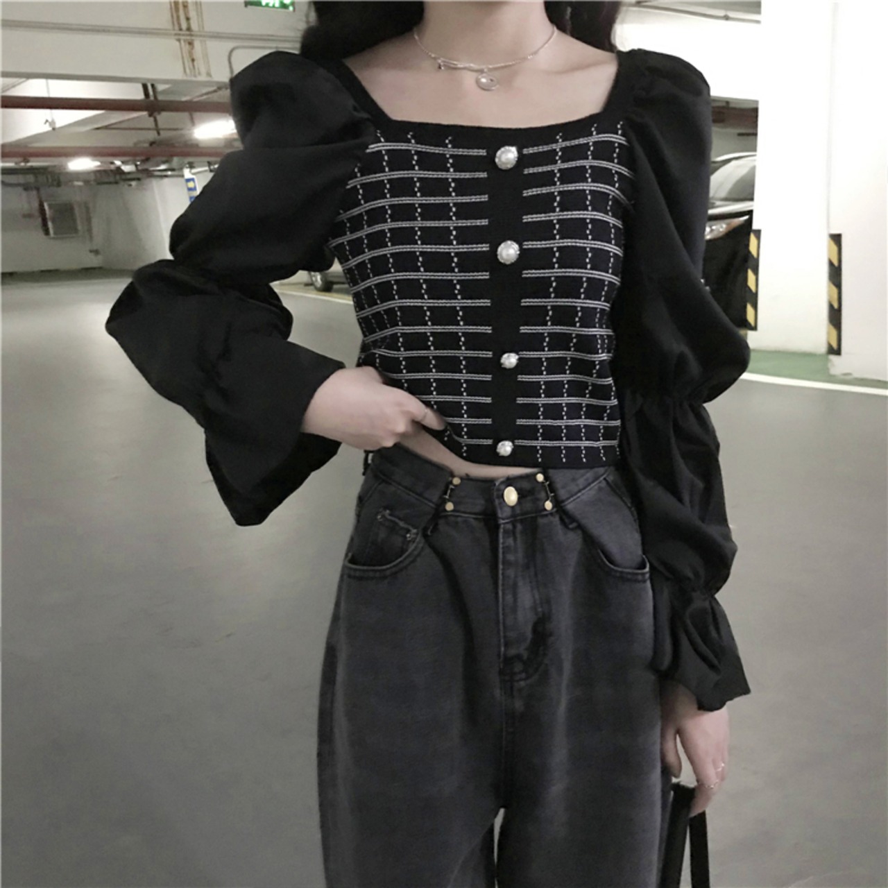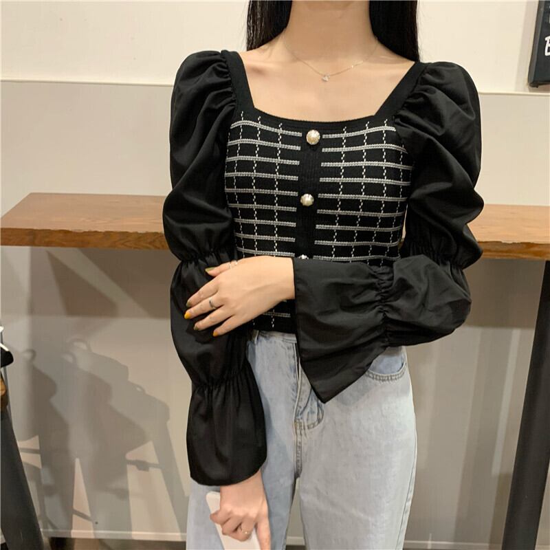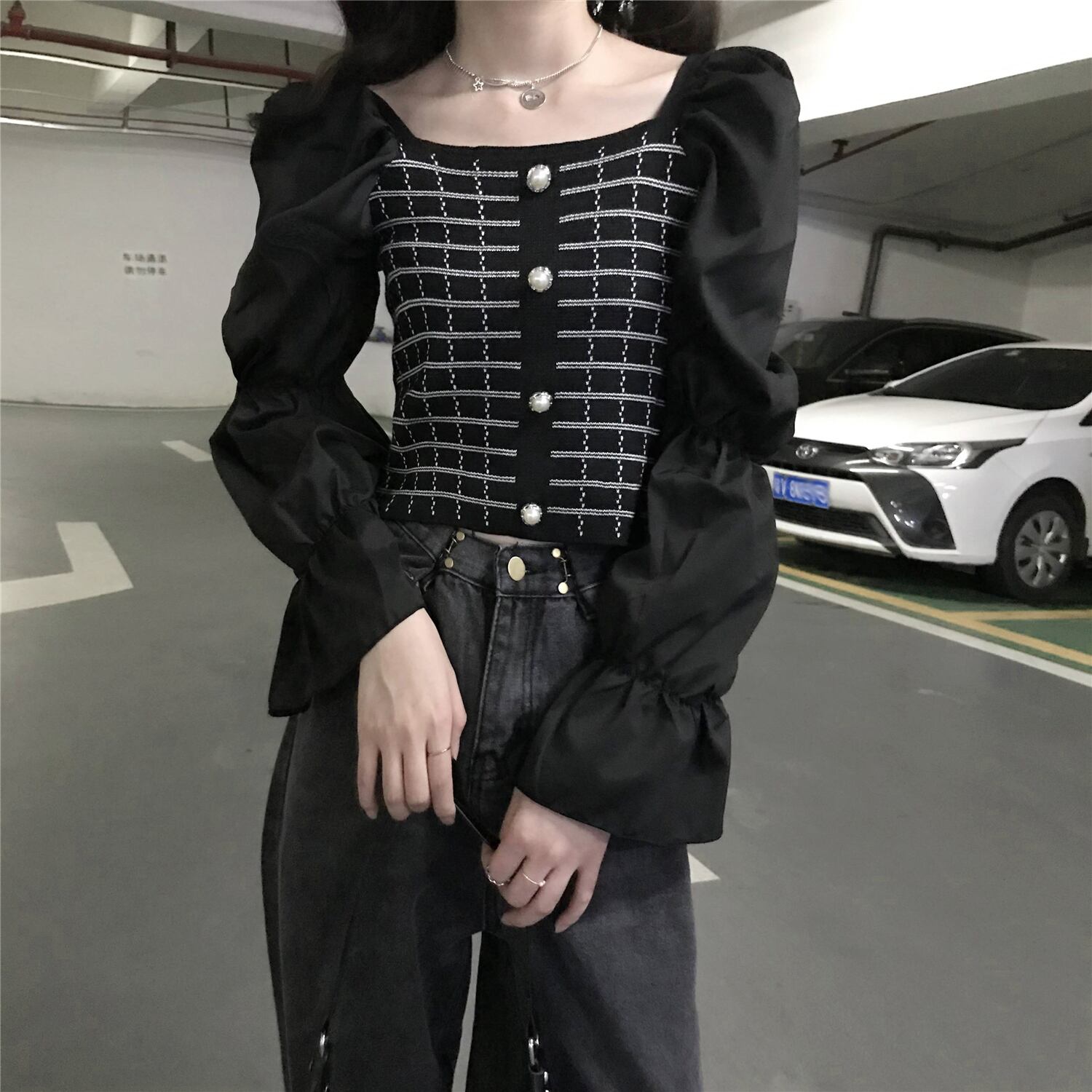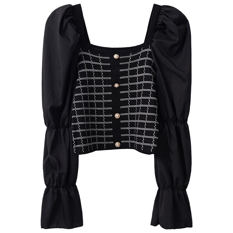 ワントーンの切り替えのデザインがシックな大人っぽさを演出し、一枚でもこなれた雰囲気を引き立てます。シンプルでありながらも愛らしい一枚は、大人可愛いスタイルを叶えること間違いなし。袖の軽やかなボリュームがドレッシーで、チェック柄のニット部分にはクラシカルなボタン付きで上品です。