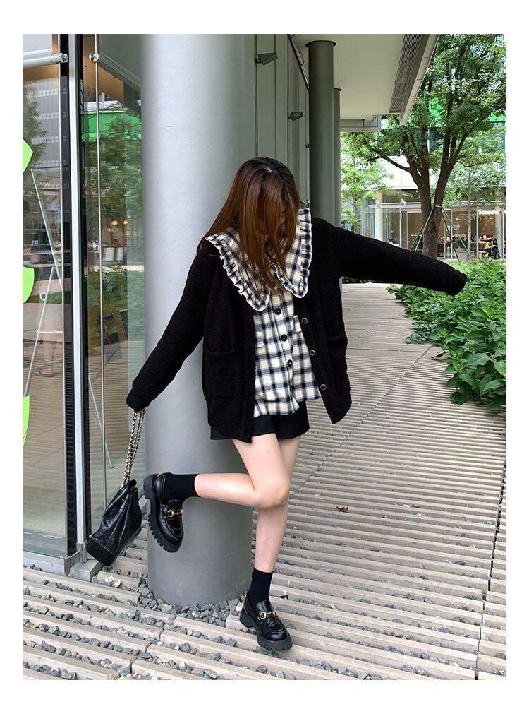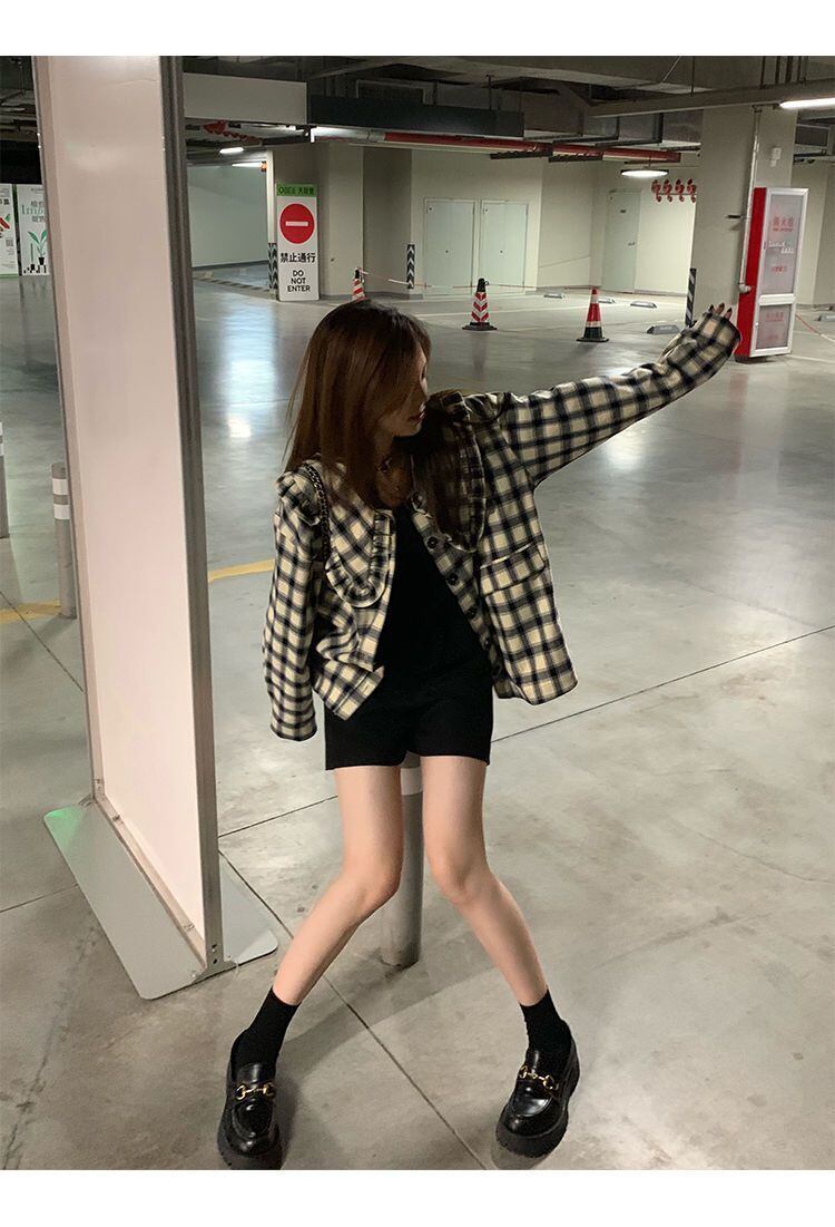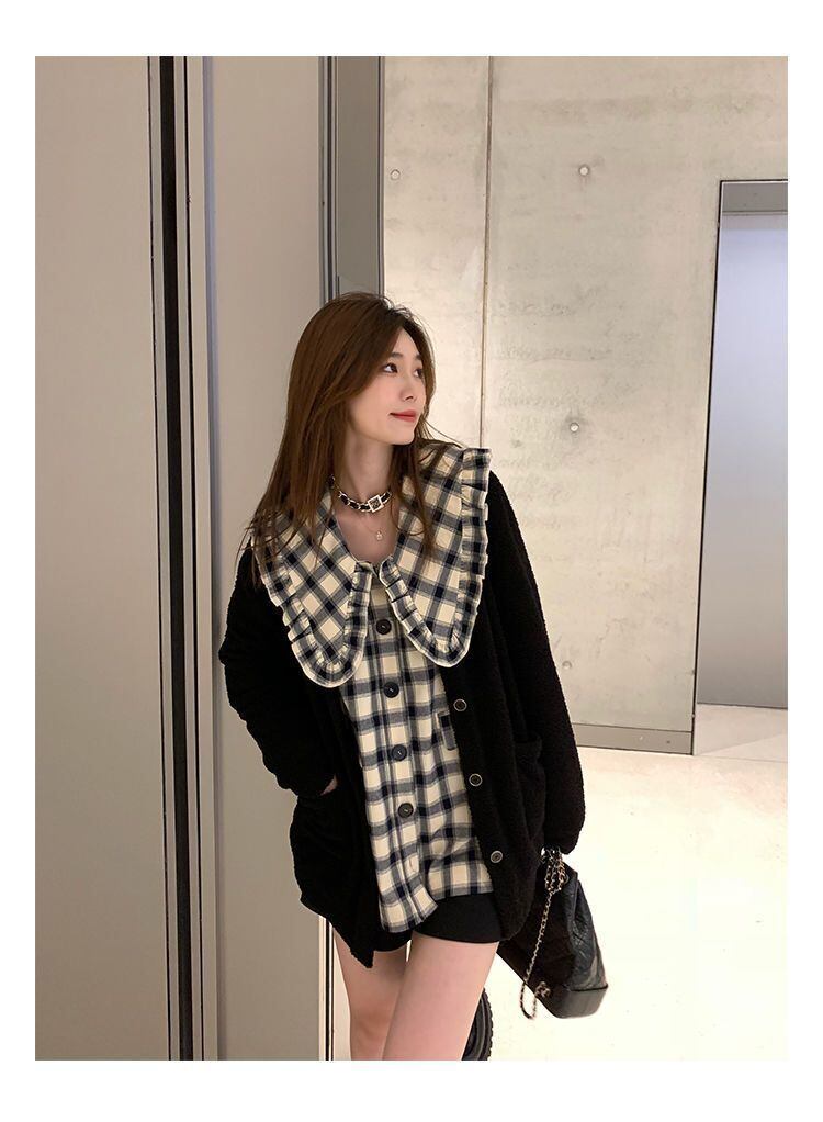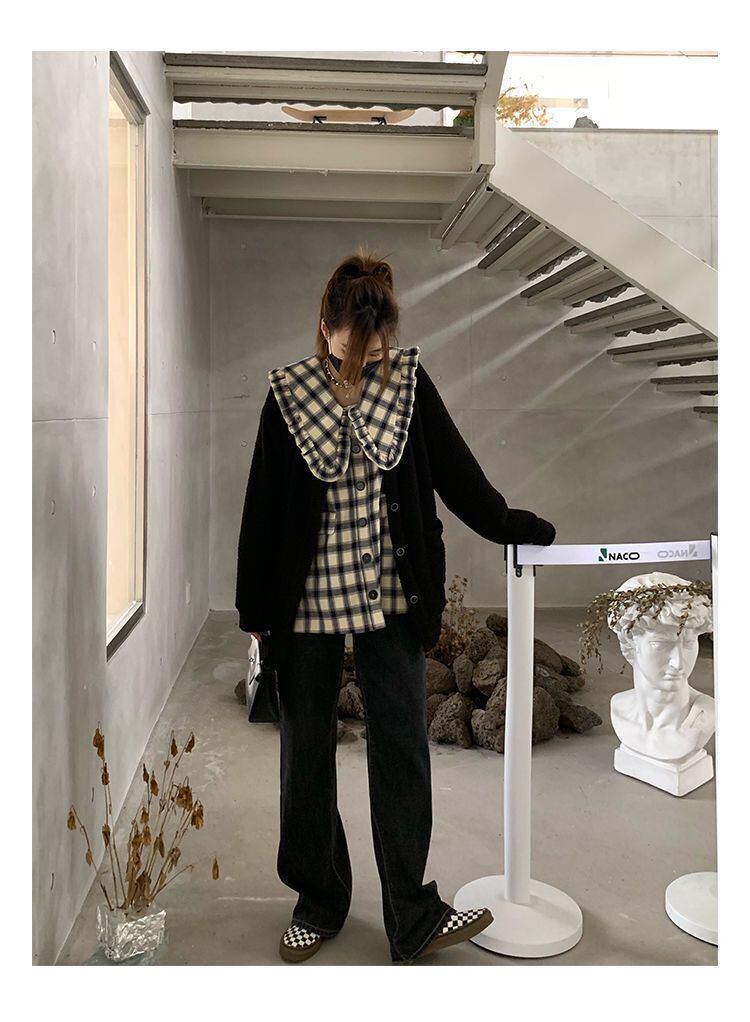 大きなフリル付きのドーリーなラージカラーが可愛い襟コンシャスなチェック柄ブラウスです。