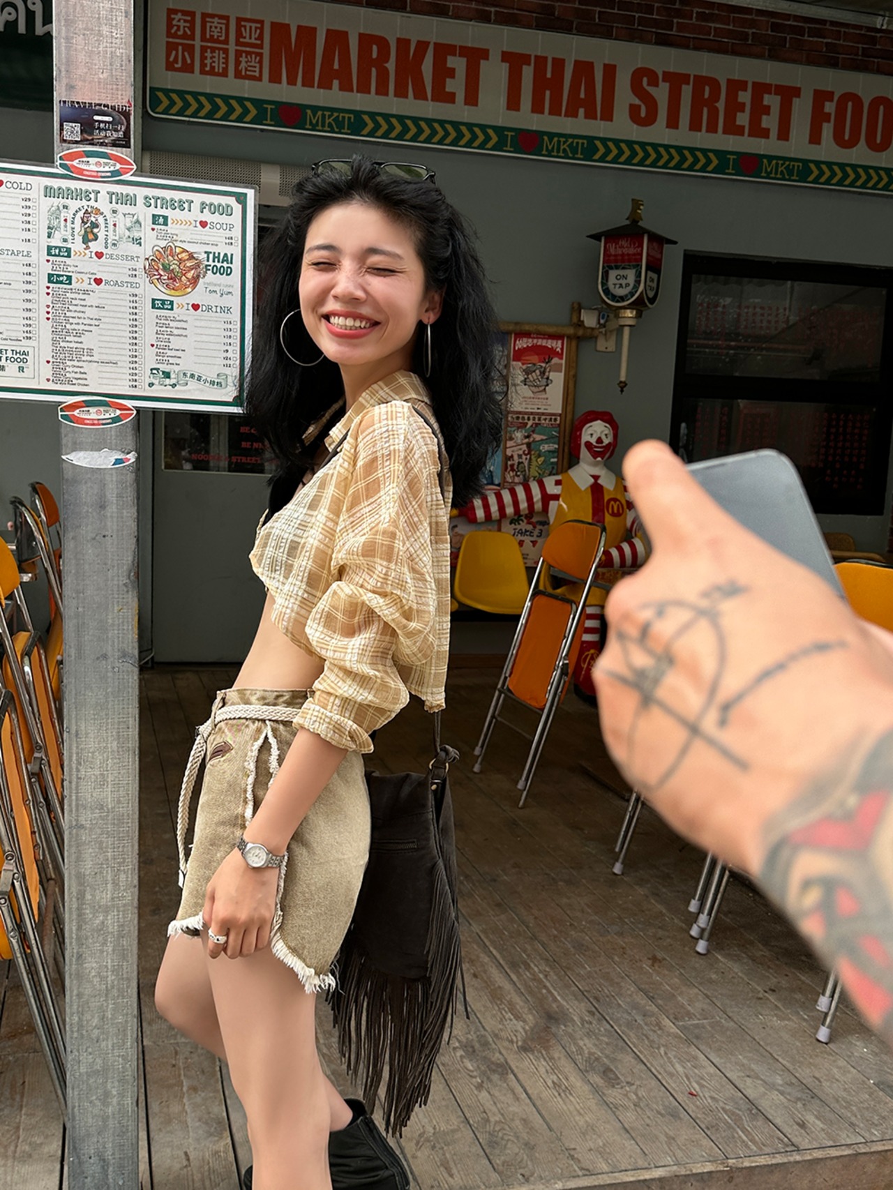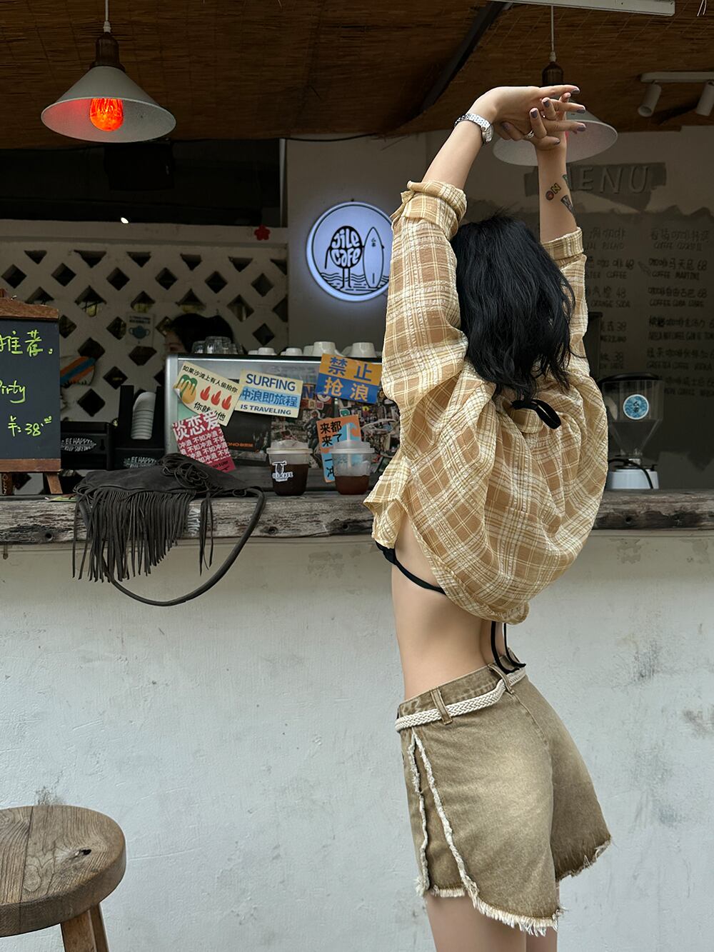 ニュアンスカラーが可愛いチェックパターンでやや透け感のあるシャツブラウスが登場しました!ぼこぼこした生地の質感がこなれた短めのシルエットがガーリーで、自然に体型をカバーしてくれる便利な一着です。さっと羽織れるミニマルなサイズ感がトレンドを抑えた軽やかな一着です。