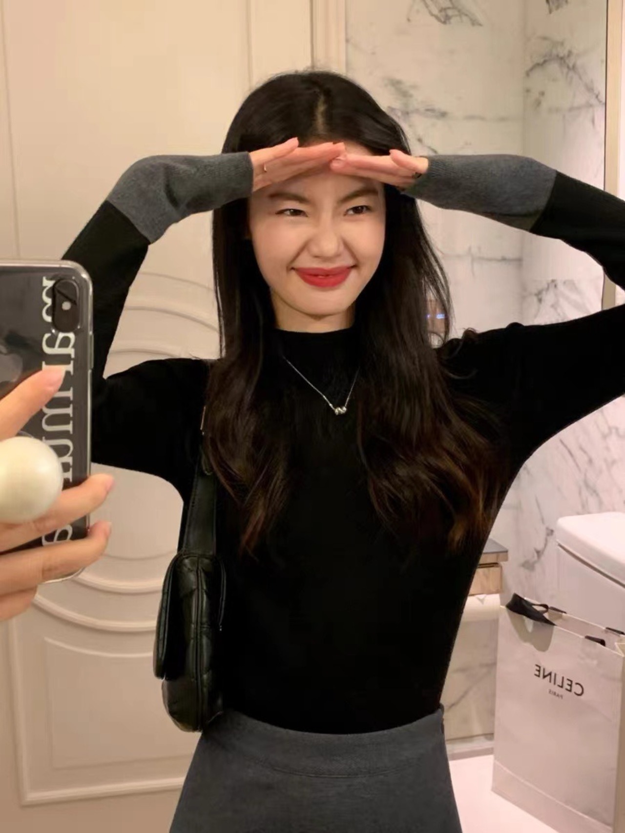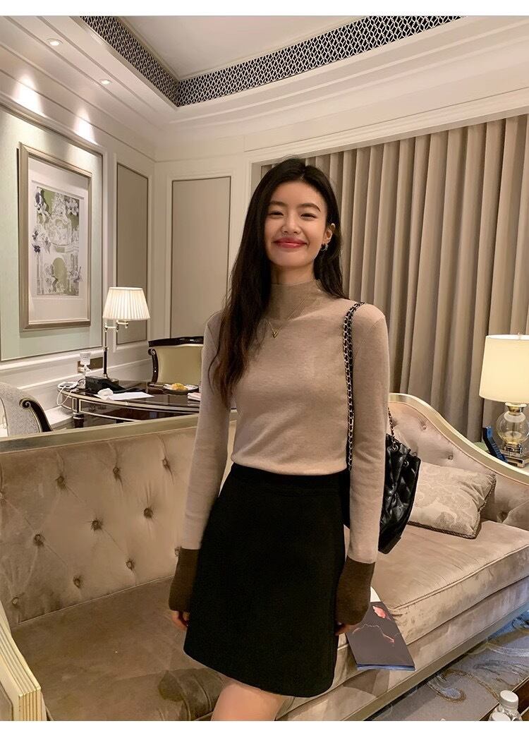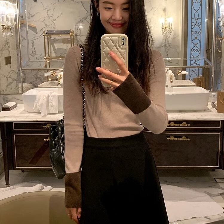襟とカフスのバイカラー切り替えがモードな印象のニットソーです。ツートーンがシックでシンプルなコーデに映えるさり気ないデザインがカジュアルです。袖と裾のフリンジ加工がさり気なくおしゃれな細身デザインなので、女性らしいシルエットを演出します。ハイネックが首元まで暖かく、春から秋冬のコーディネートにぴったりです。