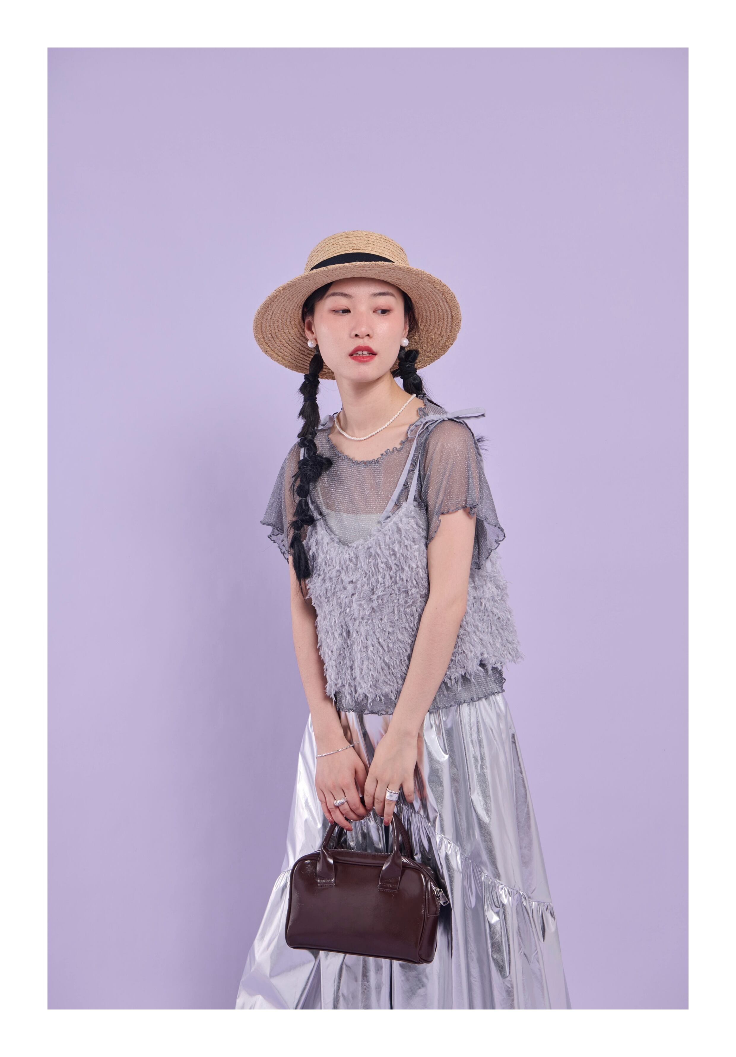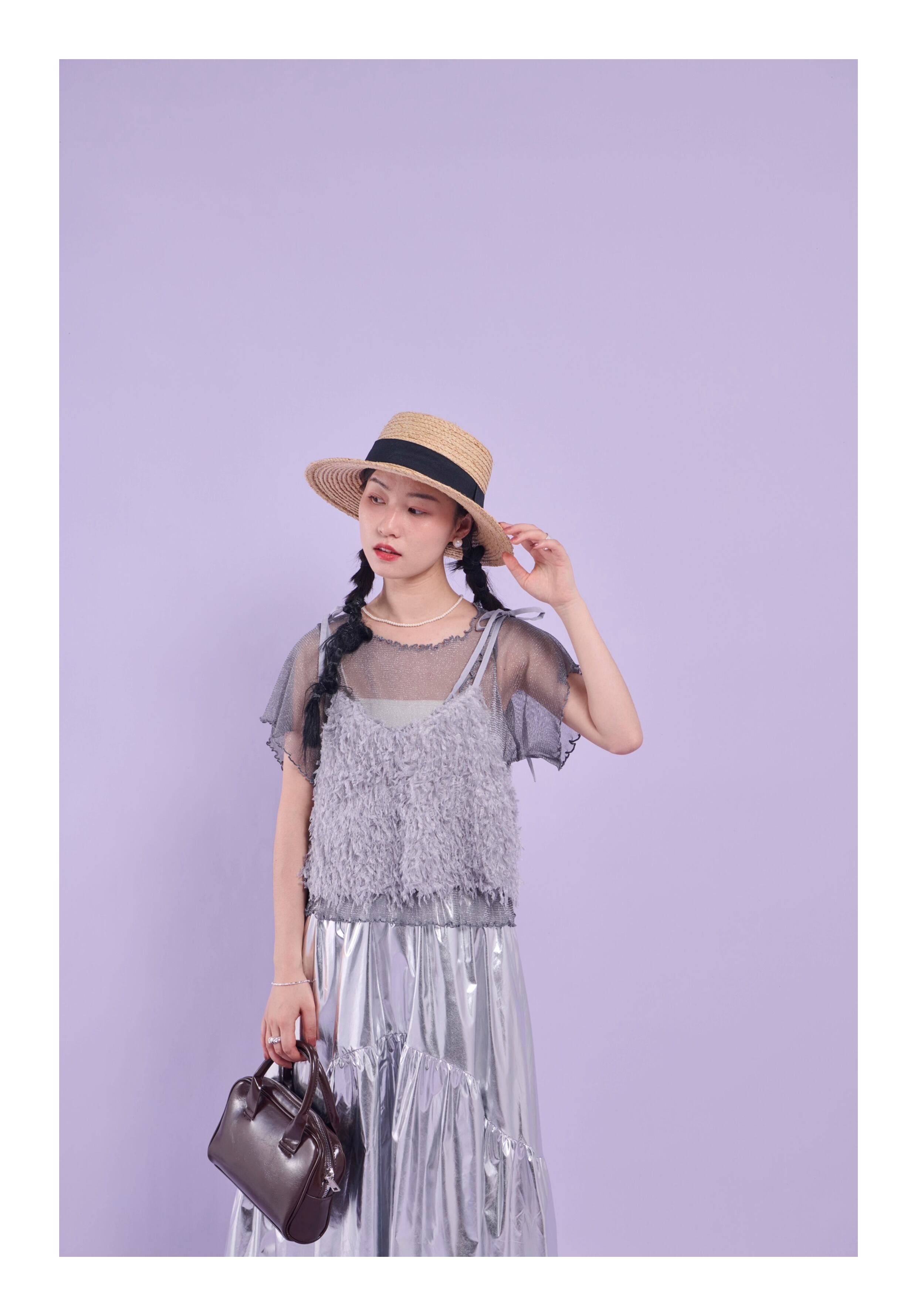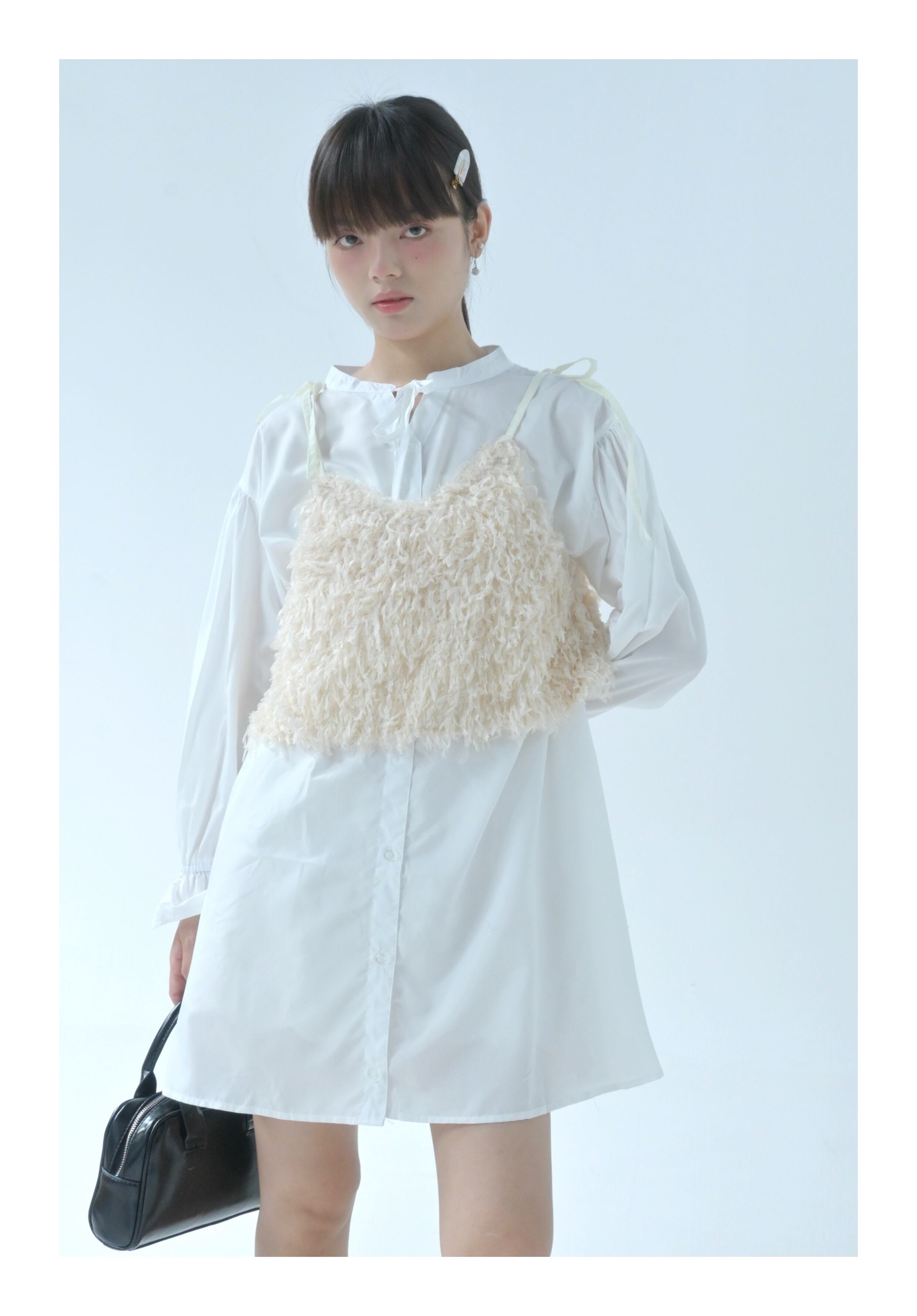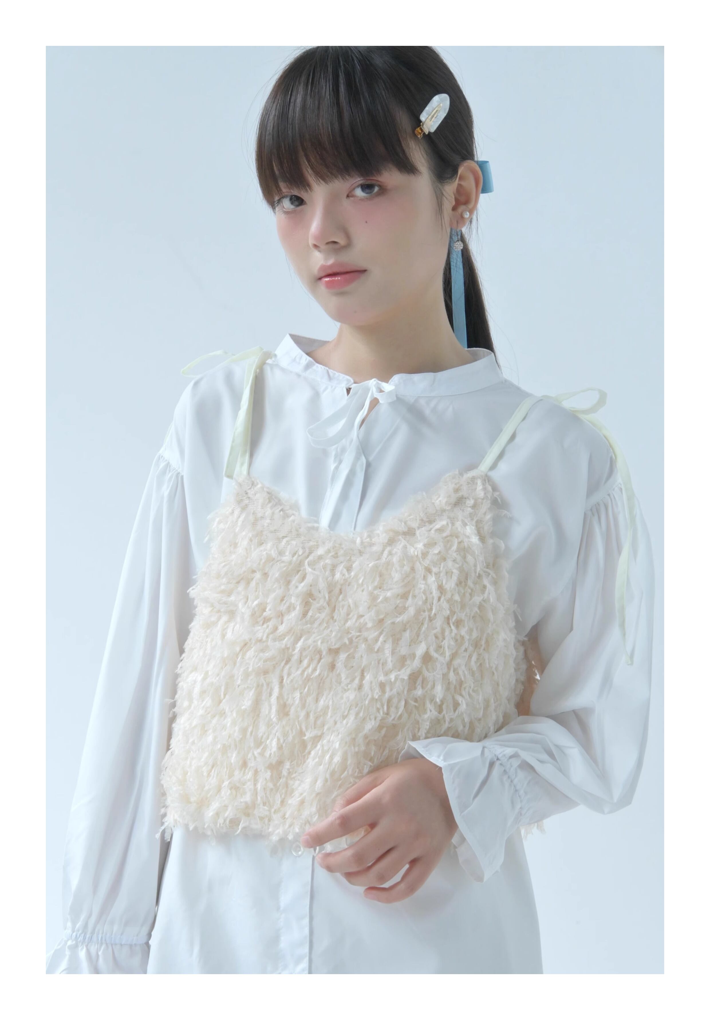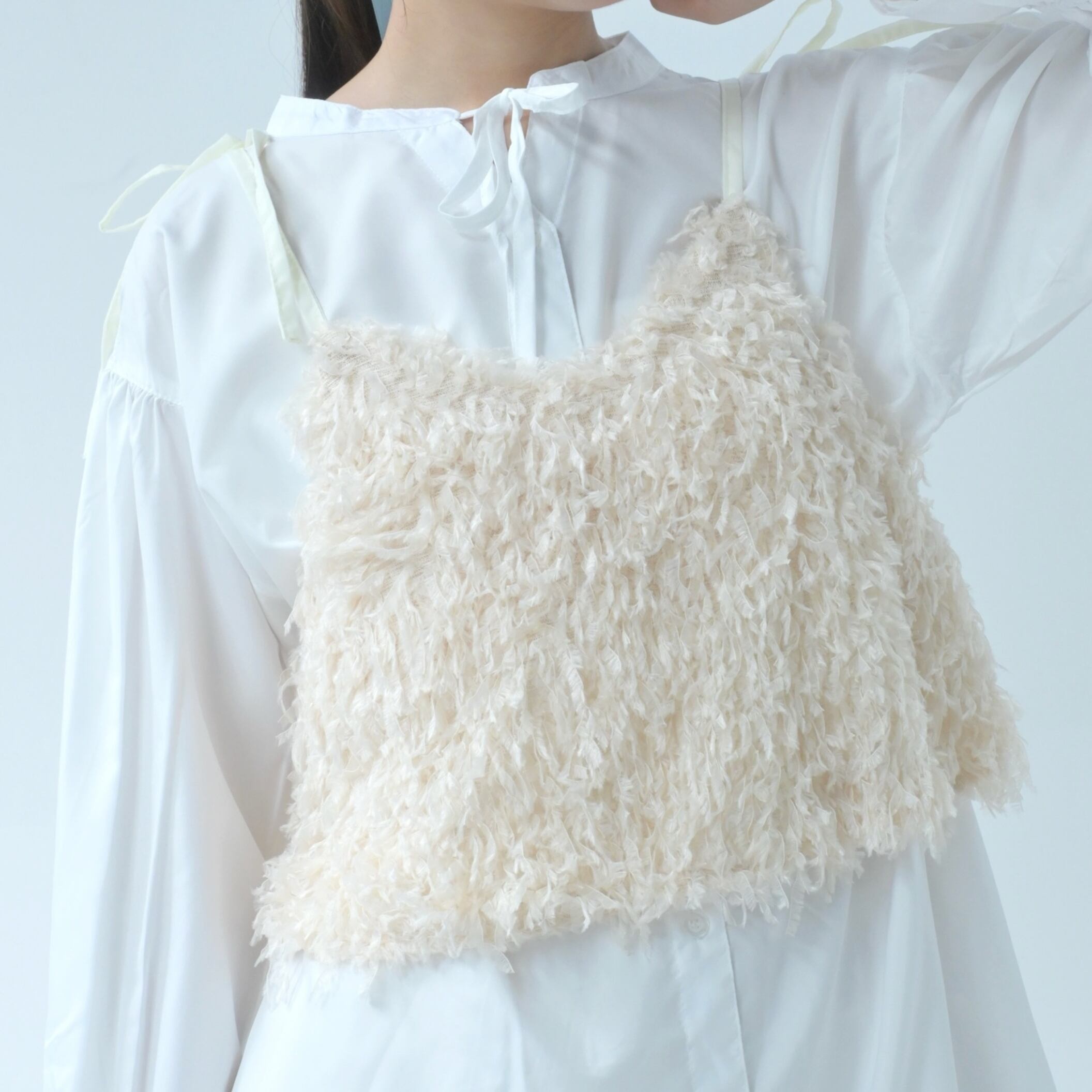 ふんわりと毛足の長いニットがフェミニンなキャミソールトップスが登場しました!ニット仕立てのざっくり感がこなれたデザインで、トレンドのビスチェを取り入れたコーデに最適です。華奢な肩紐がこなれた印象のドレッシーで高級感漂う仕立てが魅力的。