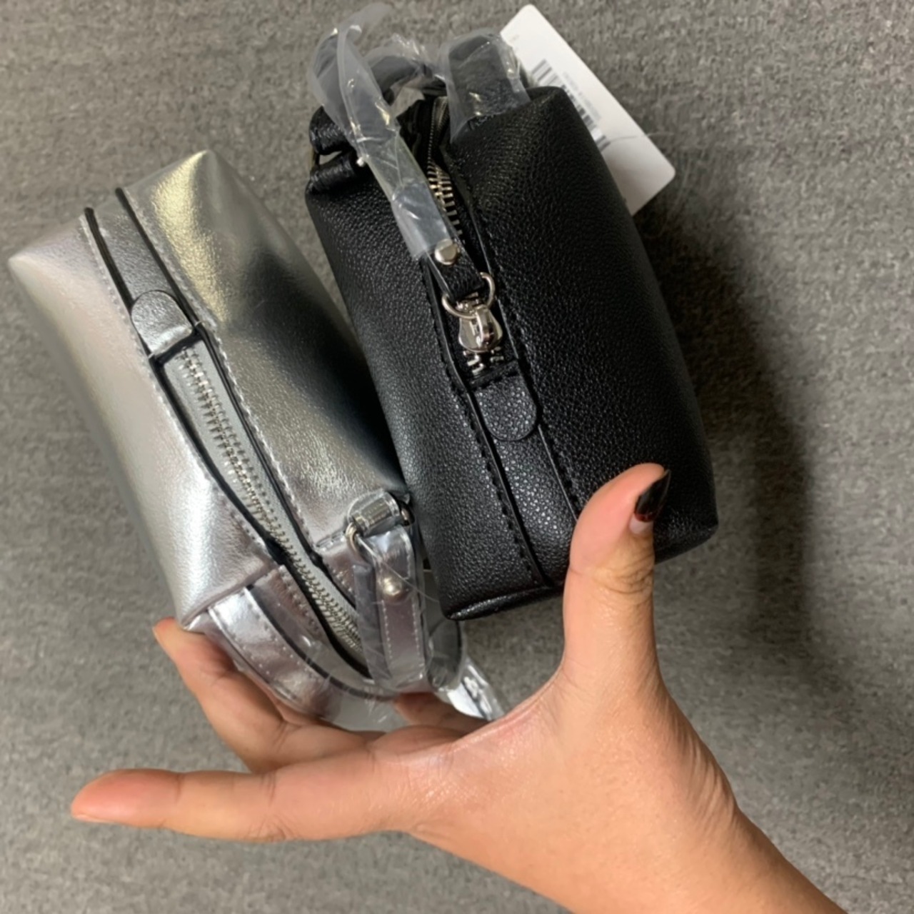 フェイクレイザーと滑らかな艶感が上品で、コーデにさりげないアクセントを加える便利なアイテムです。定番のシックな色展開が合わせやすく使いやすさ抜群です。小さいのにたっぷりのマチで収納力抜群アイテムです。