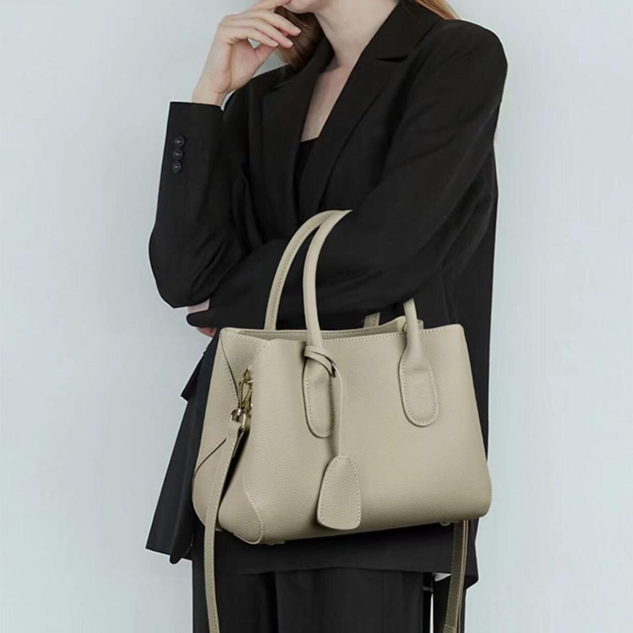 コンパクトなスクエアシルエットが可愛い、滑らかなフェイクレザー仕立ての2WAYバッグです。