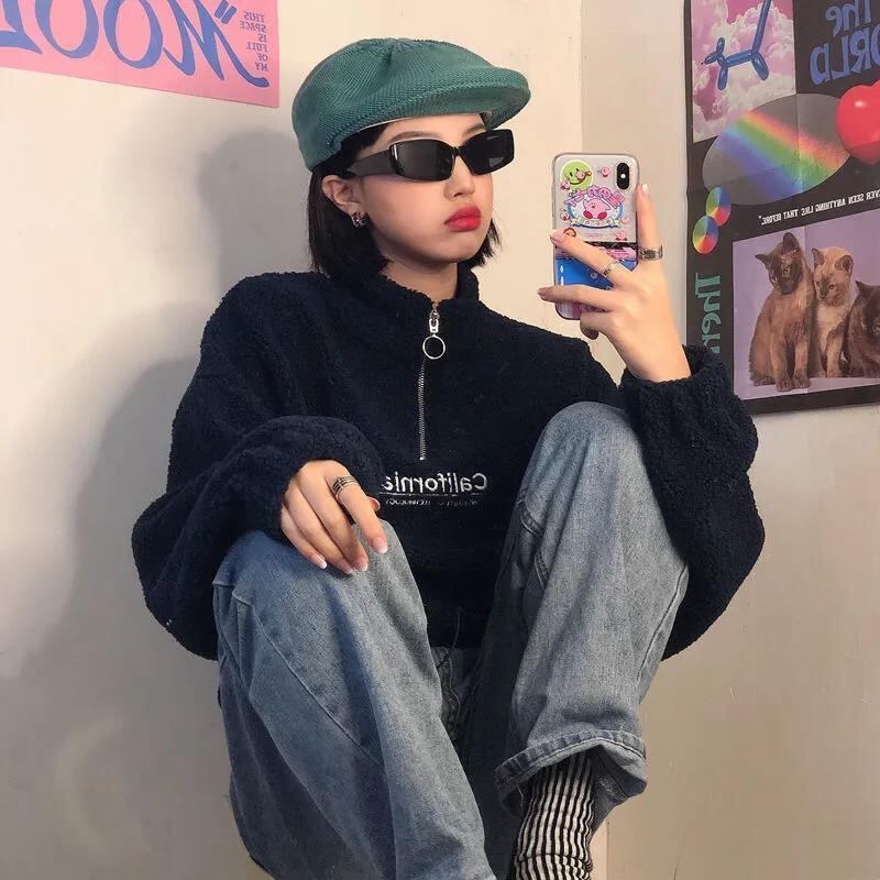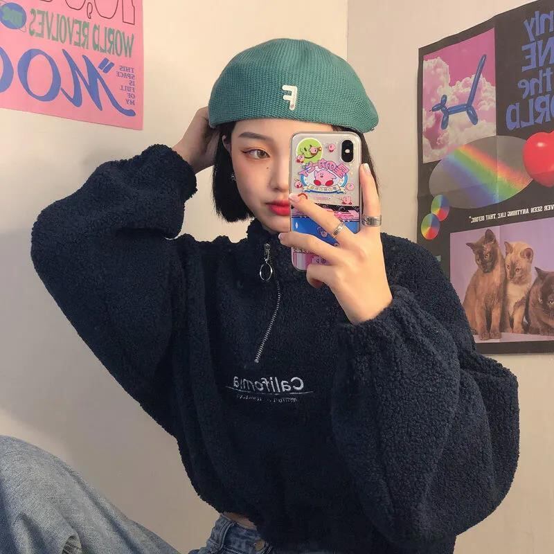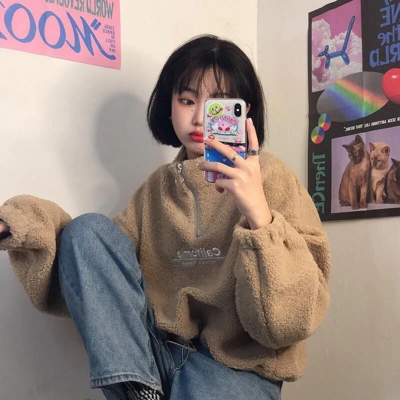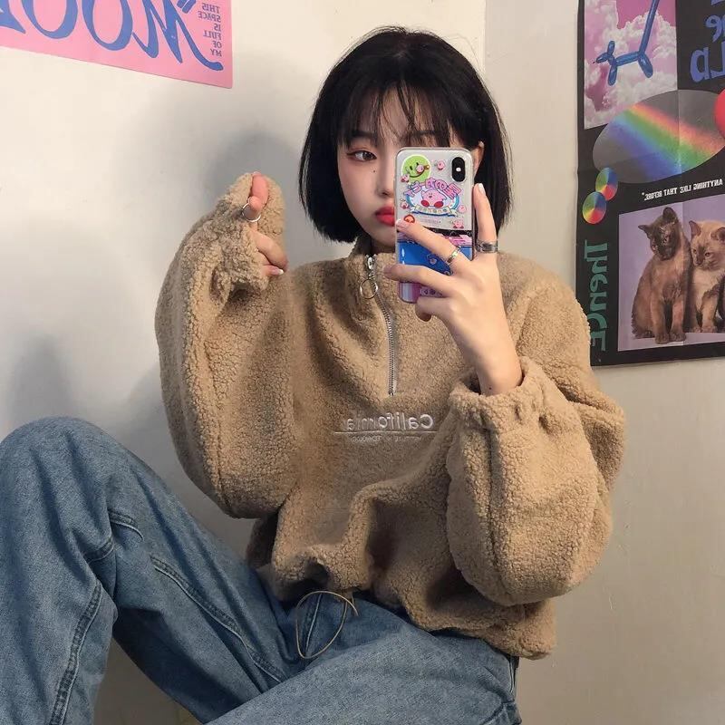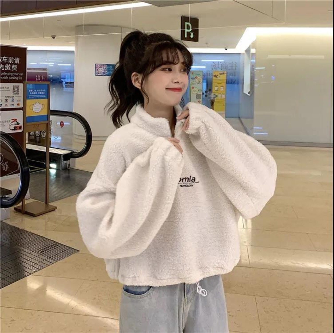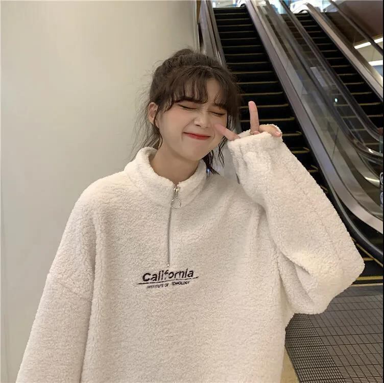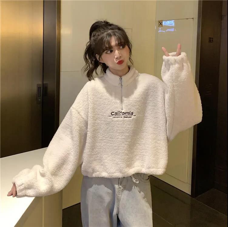 もこもこの肌触りが愛らしい、ワンポイント刺繍入りのハイネックジップアップトレーナーです。