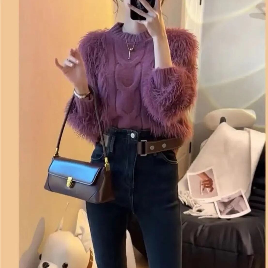 柔らかく毛足の長いモヘアがフェミニンなケーブルニットセーターです。クルーネックデザインに、ゆったりオーバーサイズがこなれたおしゃれな一枚です。ドロップショルダーとワイドなシルエットで、リラックス感とこなれた雰囲気を演出。大人可愛いスタイルにピッタリです。
