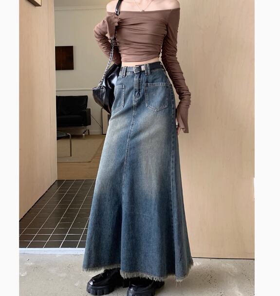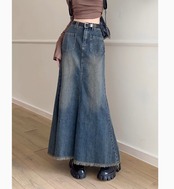 デニムスカートでは珍しいフィッシュテールデザインのスカートでシルエットがとても綺麗です!
